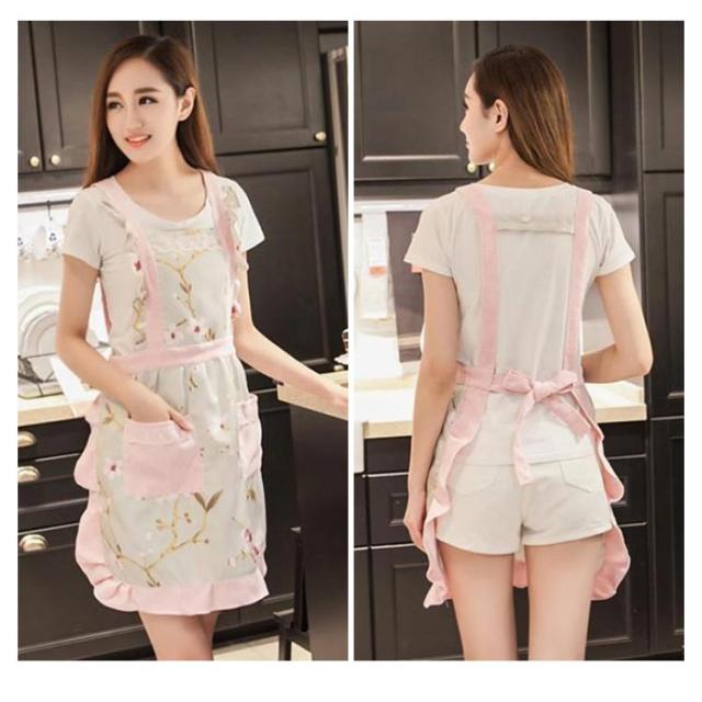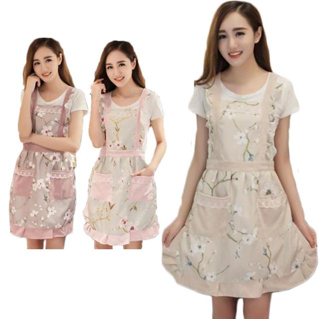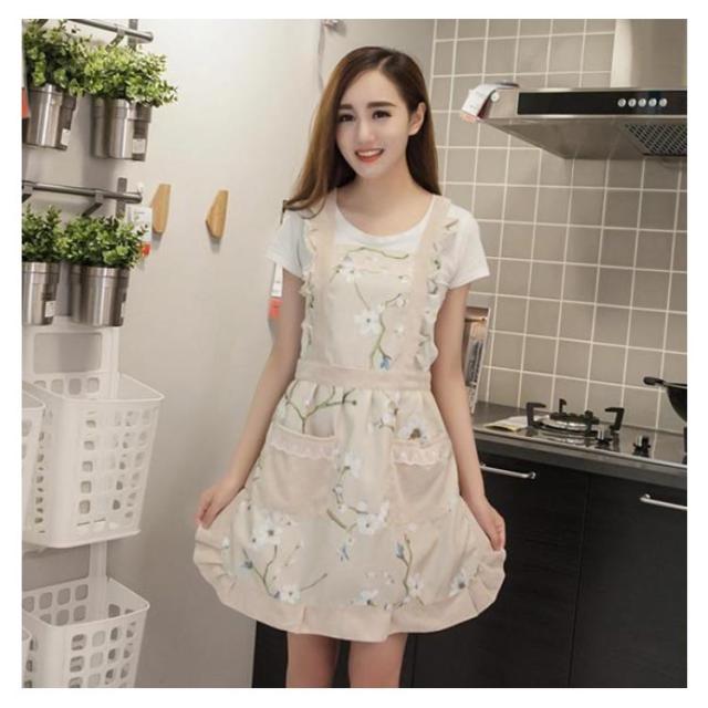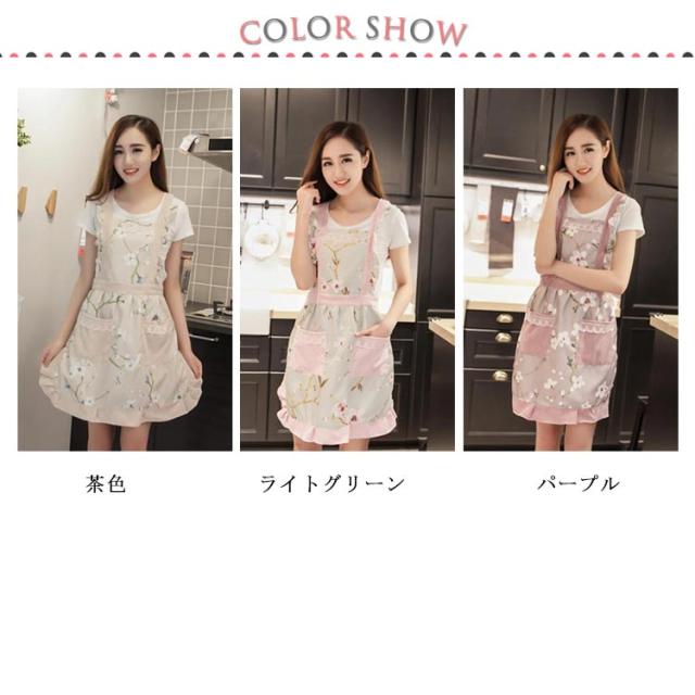 エプロン おしゃれ レディース 花柄 前掛け ノースリーブ 大人 レース フリル かわいい シンプル ショート丈 コットン 作業服 水防止 油防止 体型カバー サロペット フレア ポケット付き 送料無料