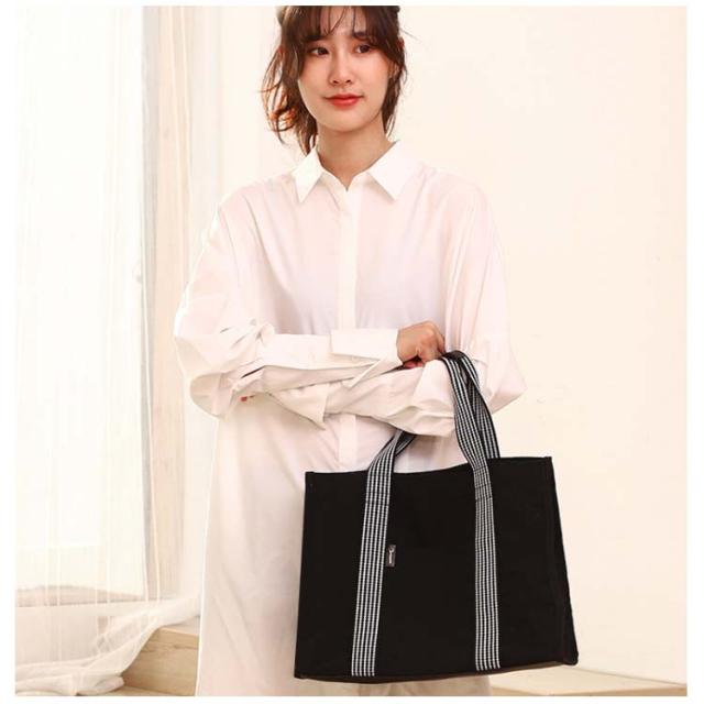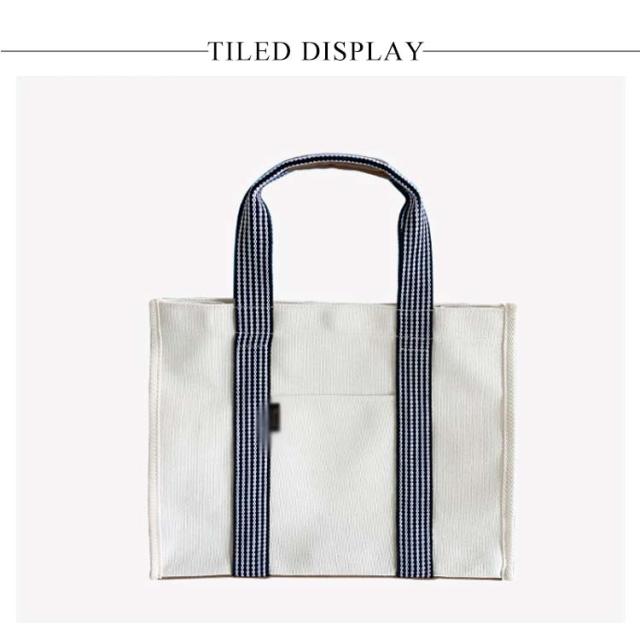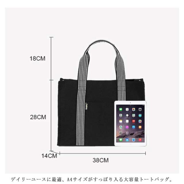 | デイリーユースに最適、A4サイズがすっぽり入る大容量トートバッグ。 前面にはスマホや定期券などすぐに取り出したいものにぴったりなオープンポケットが1個。 ユニセックスで使用出来るため、家族や友人、恋人とお揃いや色違いで持つこともできます。 | |