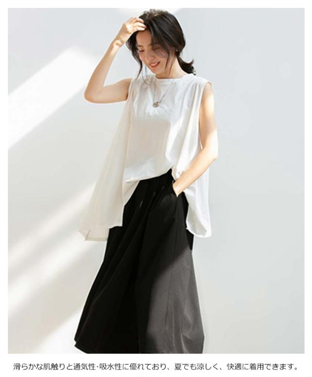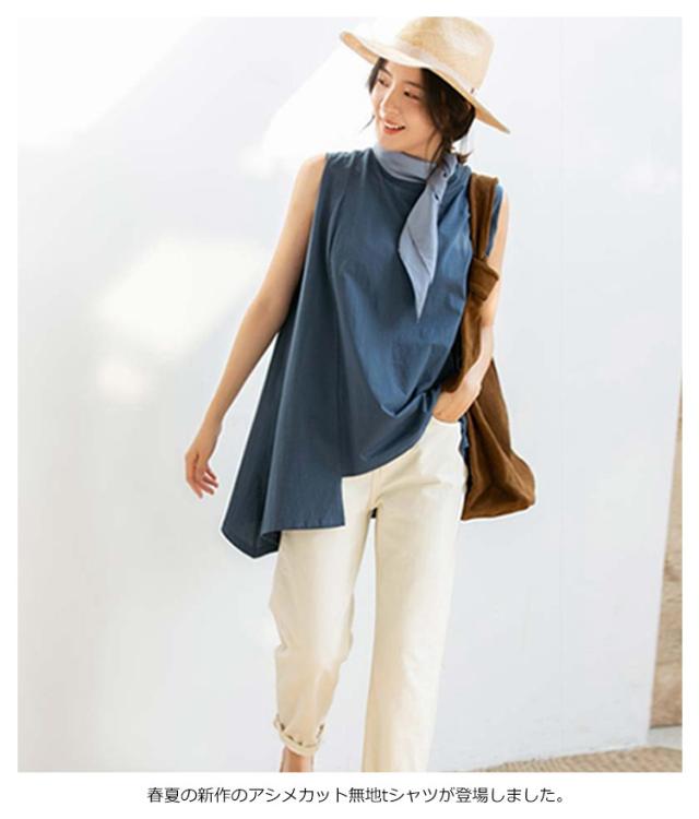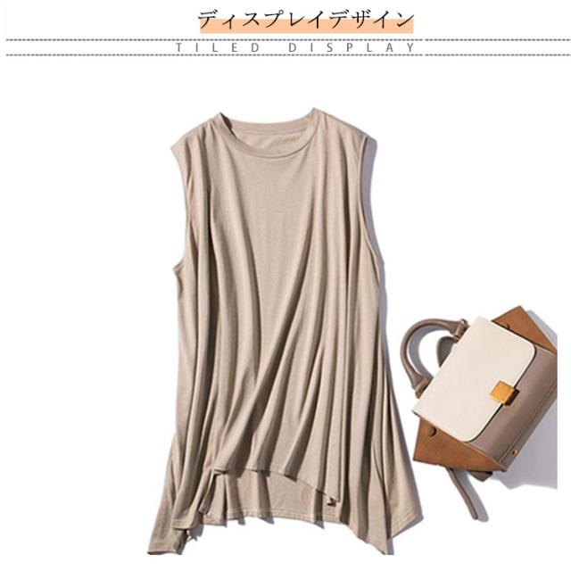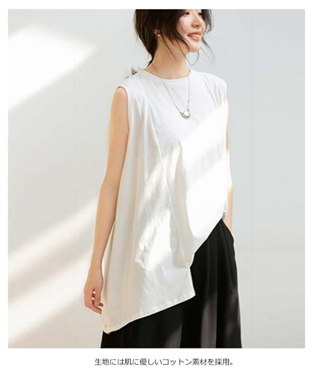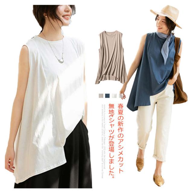 全4色×4サイズ!アシメカット タンクトップ ノースリーブ 無地 トップス ノースリーブtシャツ アシメトリー裾 レディース 春 夏 Aライン フレア 大きサイズ 夏服 綿 お洒落 送料無料