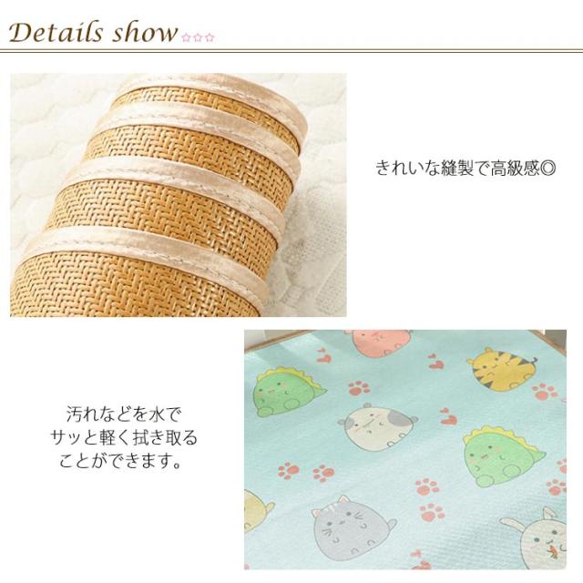 | 【商品名】ひんやりパッド 【サイズ】50*90cm 50*100cm 50*110cm 50*120cm 50*130 55*100cm 55*120cm 60*110cm 70*120cm 60*130cm 60*120cm 55*135cm 55*130cm 【素材】藤 ポリエステル その他 【特徴】汗っかきな赤ちゃんも気持ちよくオヤスミ♪接触冷感でひんやり!赤ちゃん用のひんやりクールパッド。汗をかいても素早く吸収してくれるため、ムレにくく、お肌の敏感な赤ちゃんにも安心。汚れなどを水でサッと軽く拭き取ることができます。 ※サイズ表の実寸法は商品によって1-3cm程度の誤差がある場合がございます。 ※柄の出方が多少異なることがあります。 | |