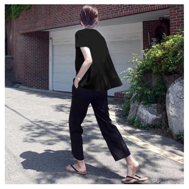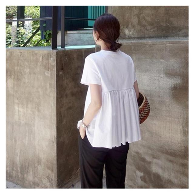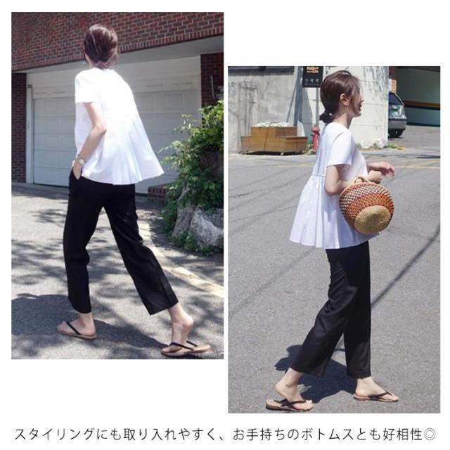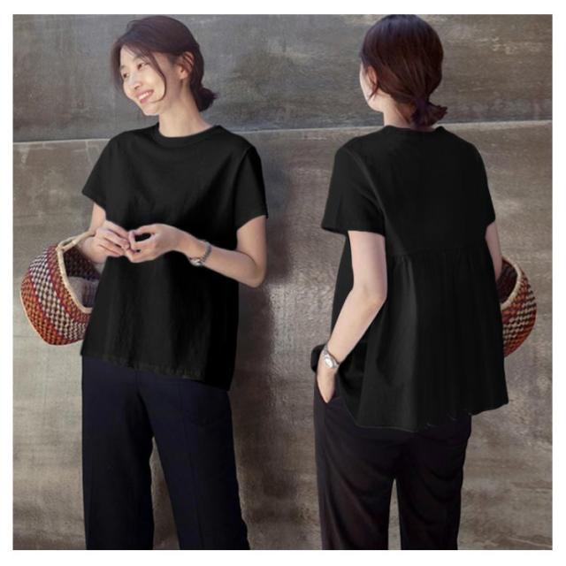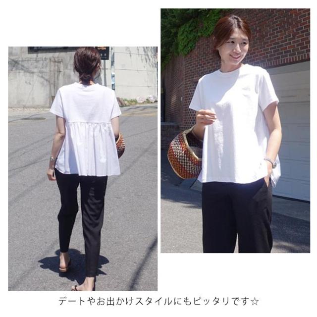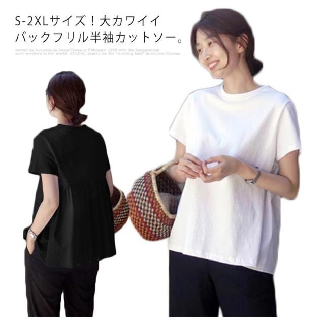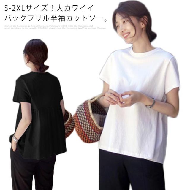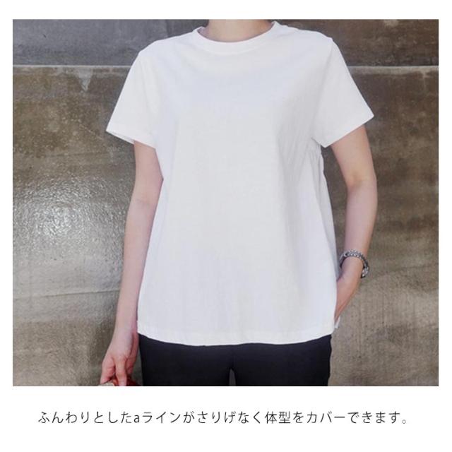 S-2XLサイズ!半袖tシャツ バックフリル カットソー Tシャツ トップス ギャザー 半袖 無地 ラウンドネック レディース 夏 夏服 夏物 かわいい Aライン 送料無料