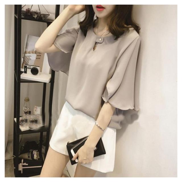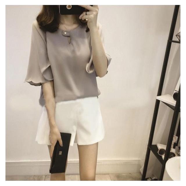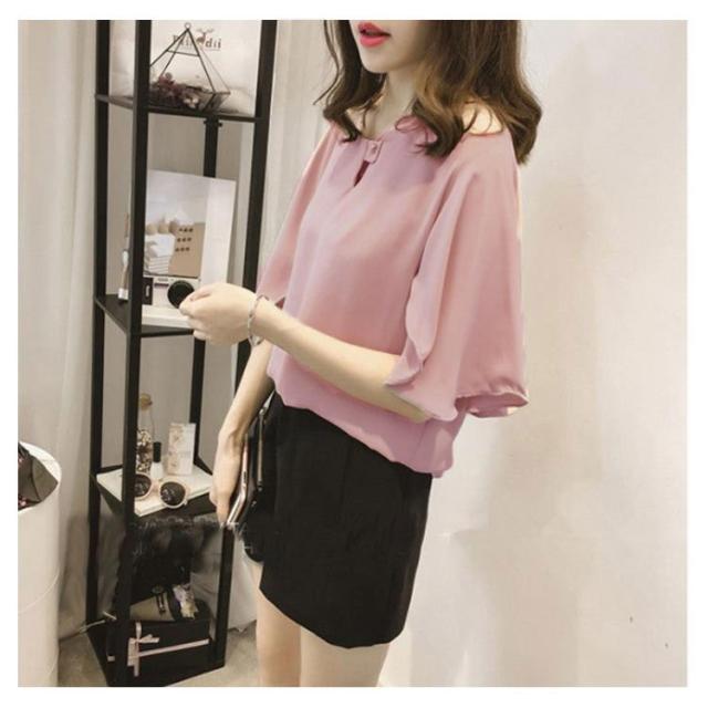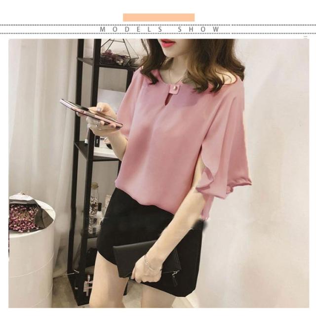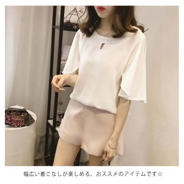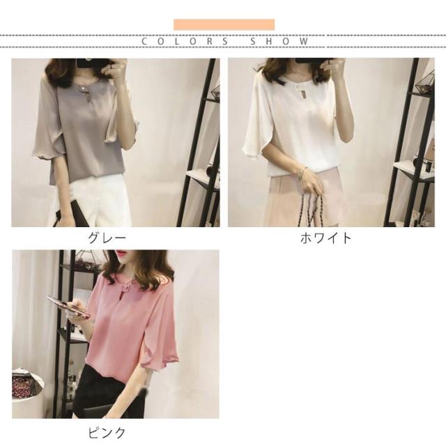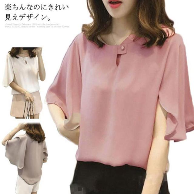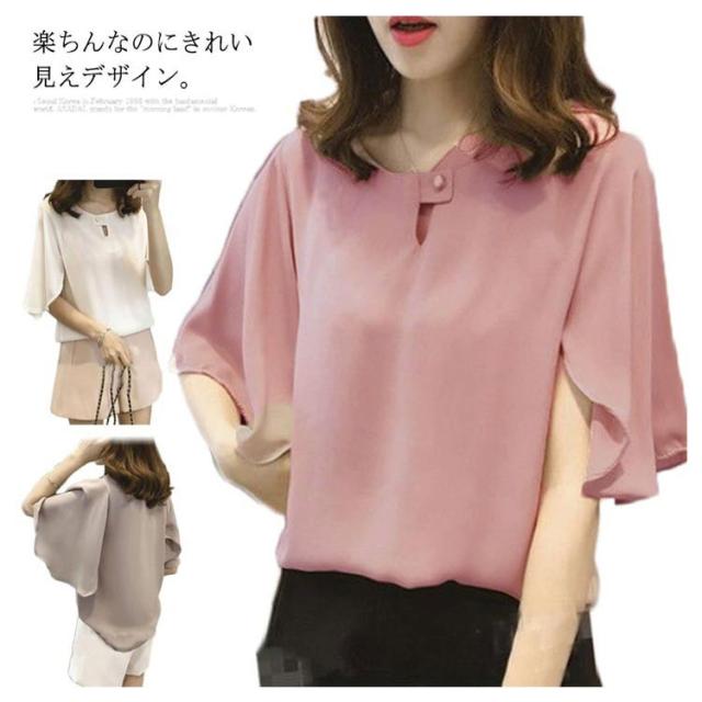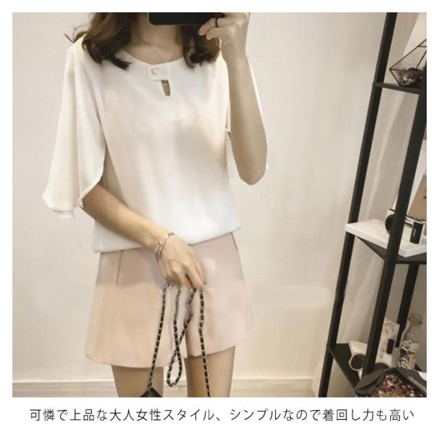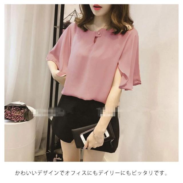 シフォンブラウス 半袖 ラッパ袖 ブラウス プルオーバー トップス レディース 夏 無地 送料無料 フェミニン シフォン 通勤 オフィス おしゃれ かわいい 大きいサイズ