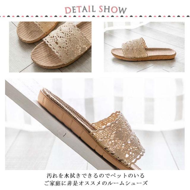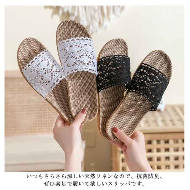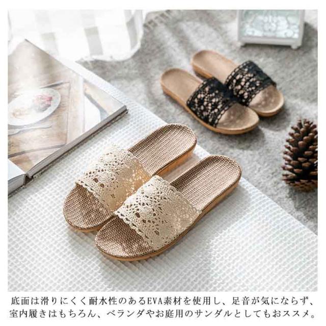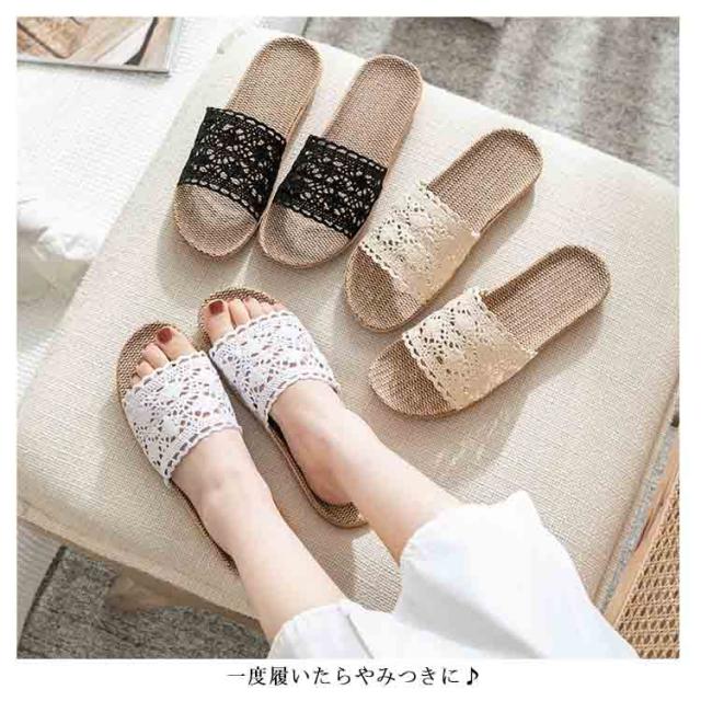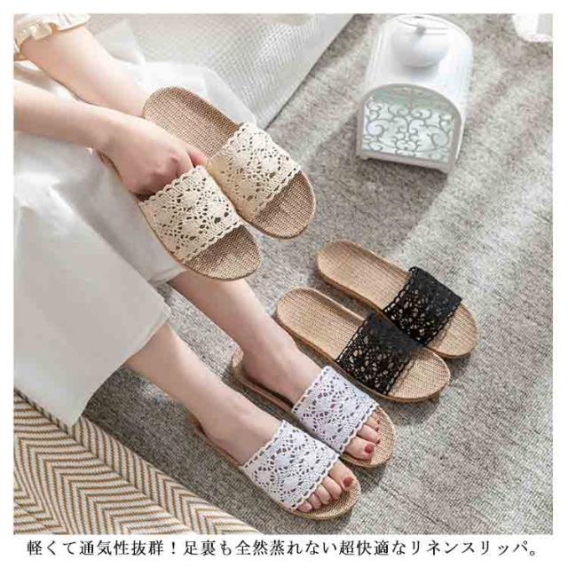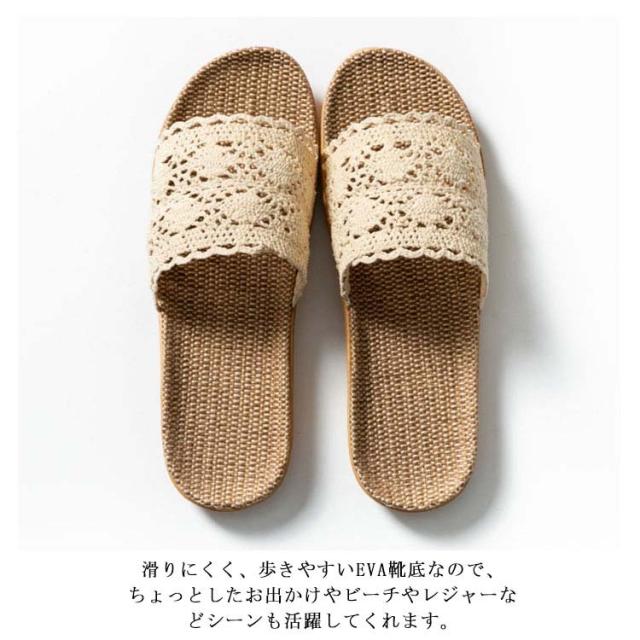 スリッパ 夏用 麻サンダル 送料無料 リネン 蒸れない 可愛い 涼しい 洗える ベランダサンダル トイレ ルームシューズ レディース 刺繍 レース 室内 オフィス用 来客用