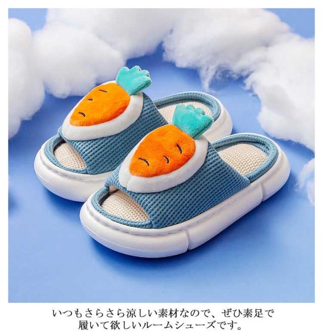 子供スリッパ 夏用 綿麻 スリッパ 前開き ルームシューズ 柔らかい トイレサンダル ルームスリッパ 室内履き 洗える 送料無料 春秋 キッズ 可愛い 男の子 女の子 滑り止め