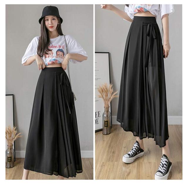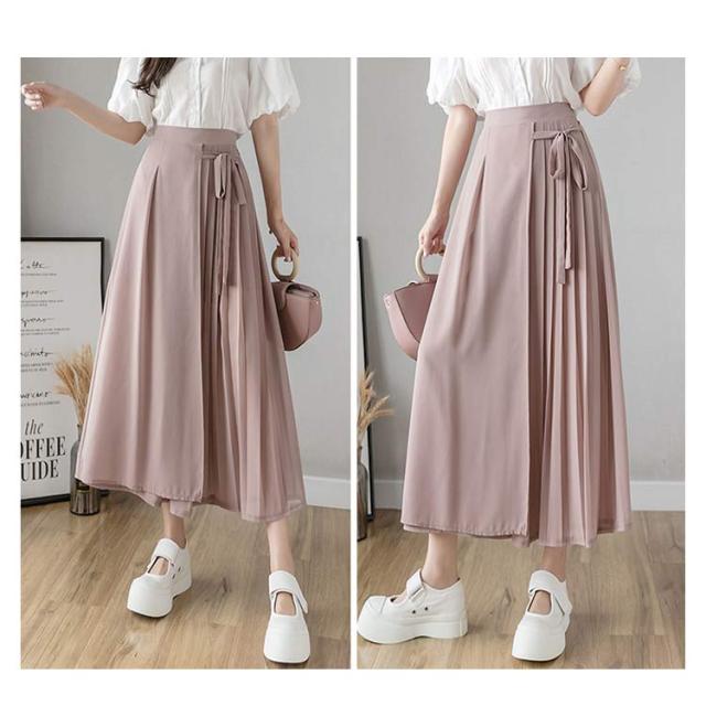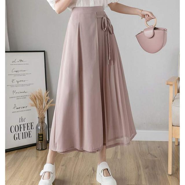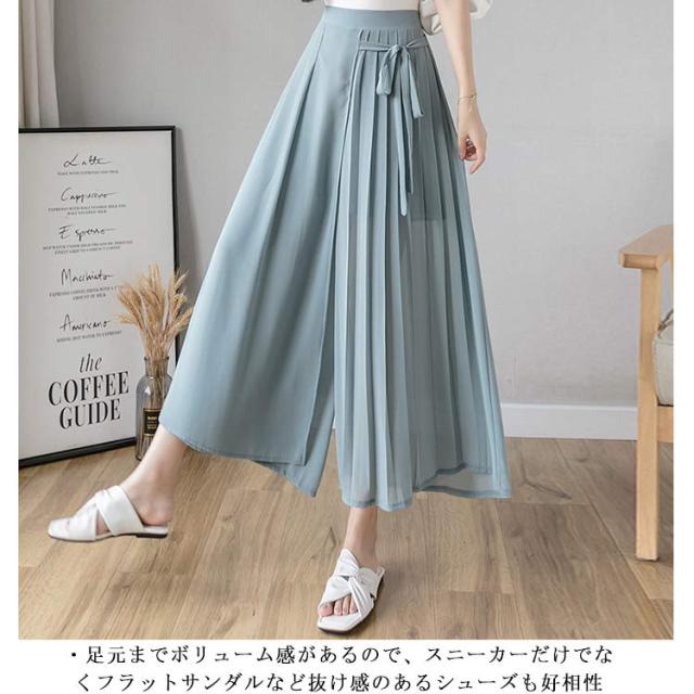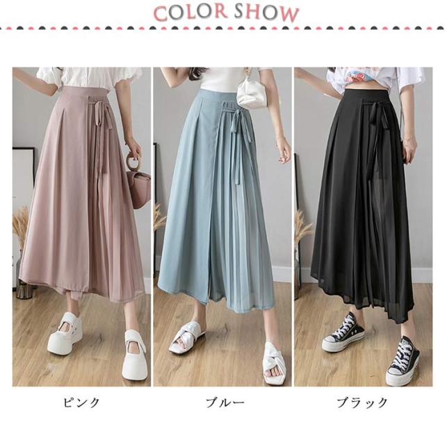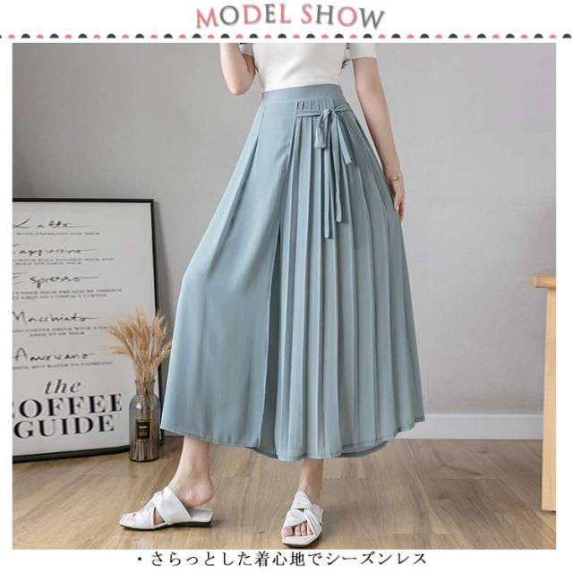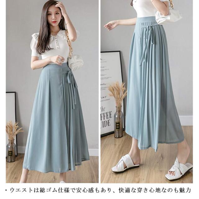 送料無料 ロングスカート マキシ丈スカート フレアスカート ワイドパンツ 低身長 高身長 体型カバー プリーツ ウエストゴム 春夏 30代 40代 50代