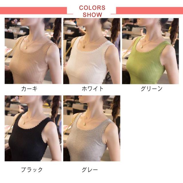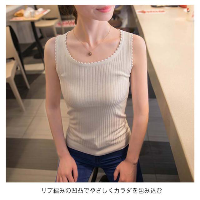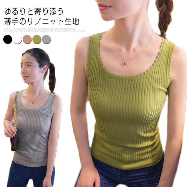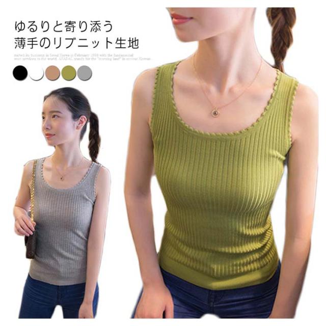 リブインナー サマーニット リブインナー リブ編み シンプル 着回し力 送料無料 リブニット レディーストップス 透けない 見えない