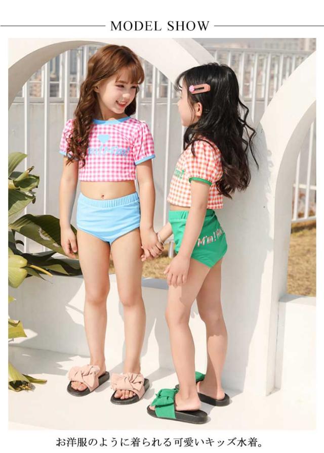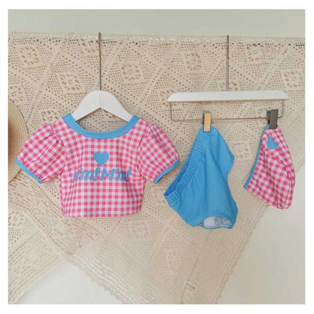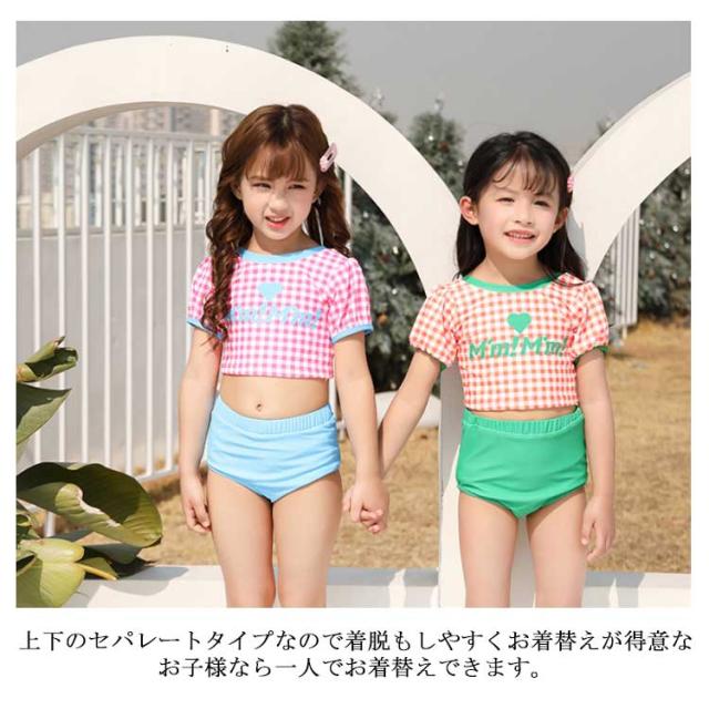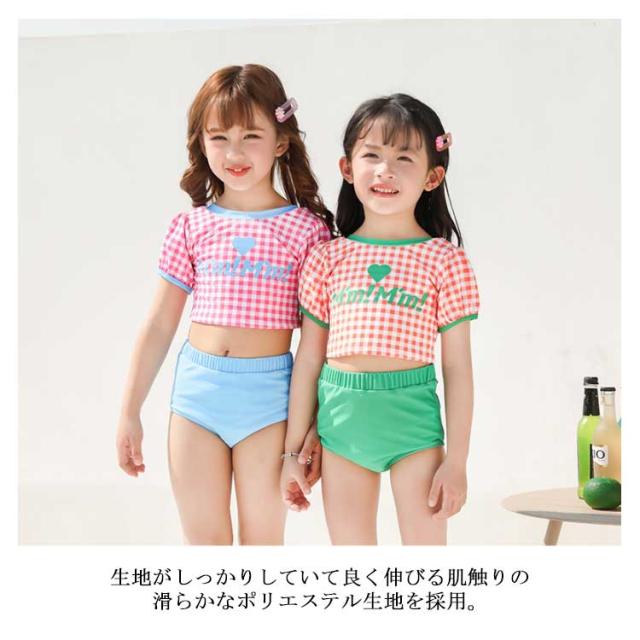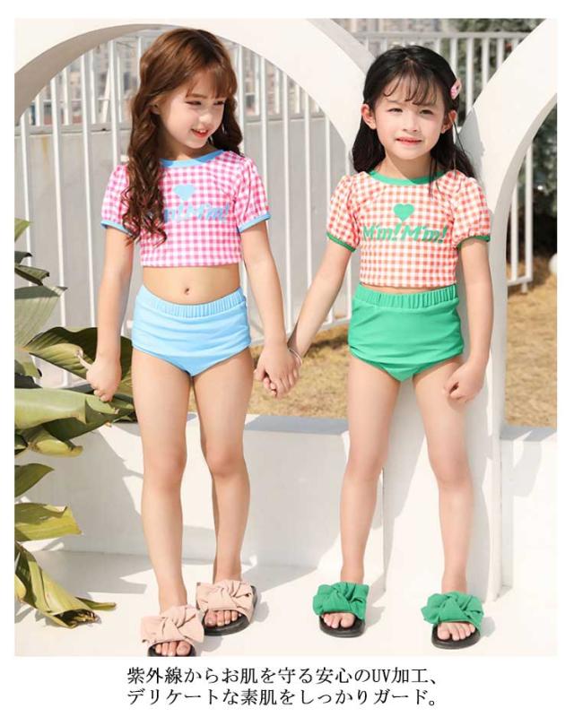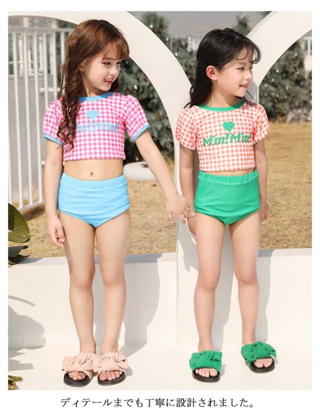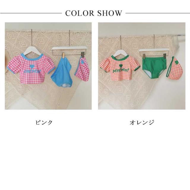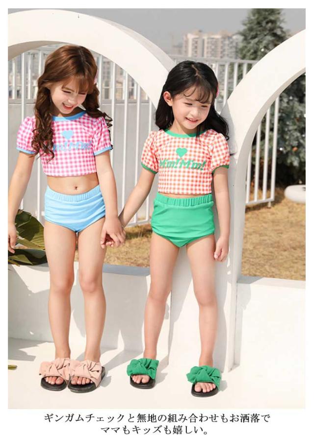 送料無料 子供水着 キッズ 水着 女の子 ギンガム チェック柄 半袖 セパレート 3点セット セットアップ スイムウェア ジュニア かわいい ガールズ 女児 子供 UVカット 幼稚園 学校用 海 水泳 スイミング スクール レジャー 夏 水遊び