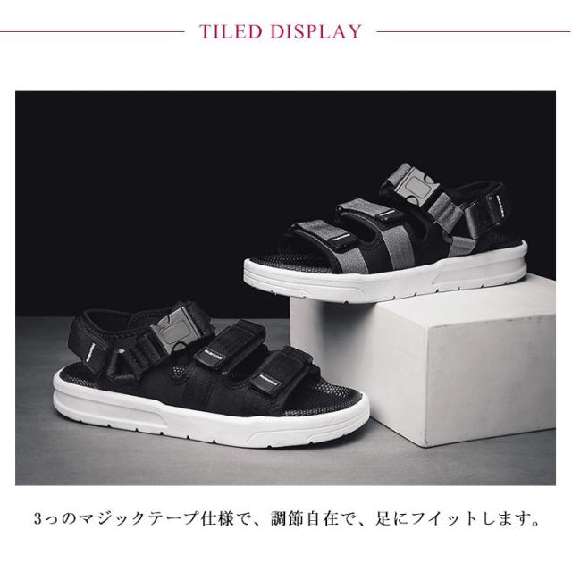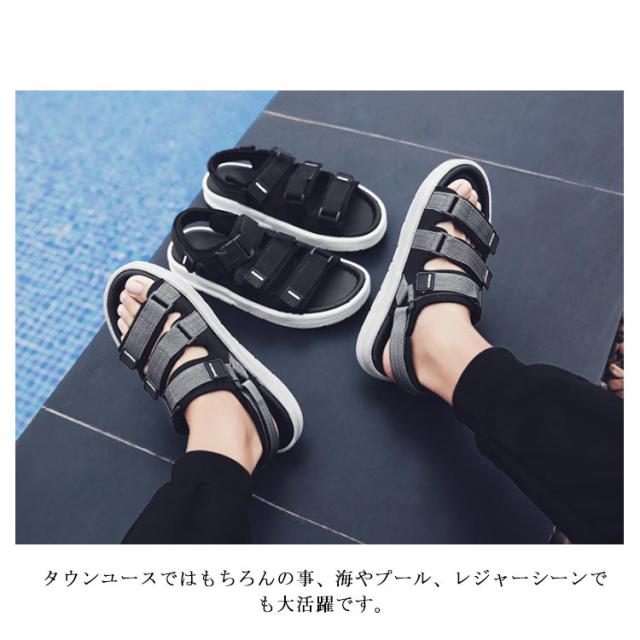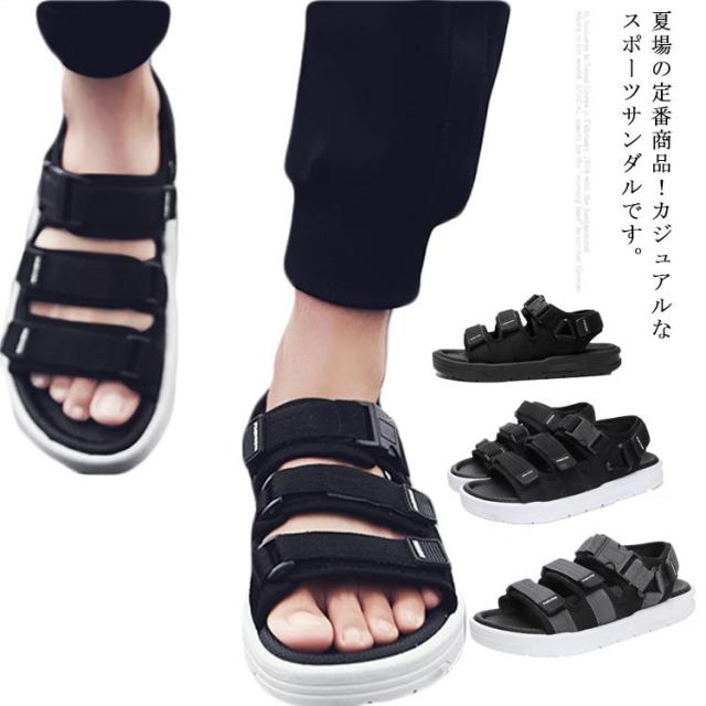 サンダル メンズ スポーツサンダル 厚底 男性 ビーチサンダル マジックテープ アウトドア 軽量 歩きやすい 軽量 防滑 耐久性 シンプル おしゃれ 個性的 超軽さ 旅行 プール 海 ビーチ 海水浴 夏