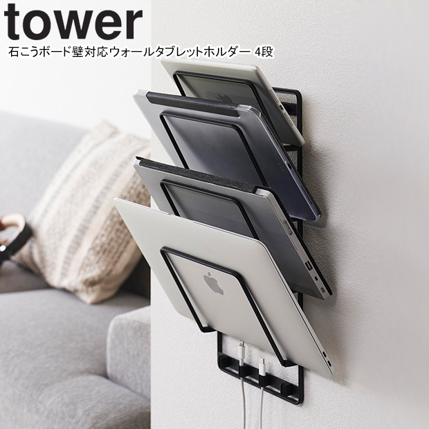 yamazaki tower tower-l 1980 置き場所に困るノートPCや学習用タブレットを壁面にスッキリ収納。