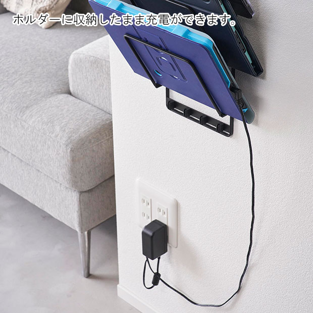 石こうボード壁対応ウォールタブレットホルダー タワー 4段 ブラック