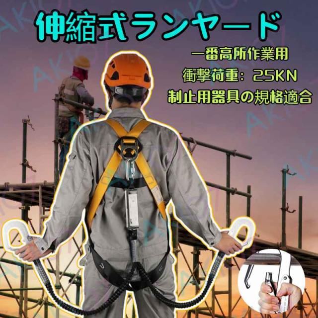 【1丁&2丁掛け選択可】【新規格適合】伸縮式ランヤード 電気工事 高所安全作業用 落下防止 安全ベルト 安全ロープ 安全作業補助 高所 落下防止墜落制止用器具 一般高所作業用 空中作業 土木工事 高強度 安全確保 フック付
