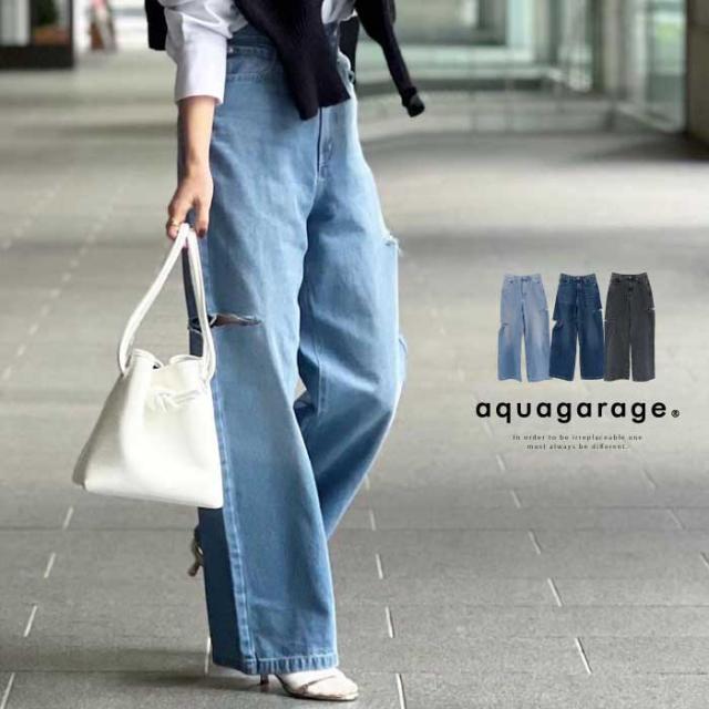ダメージストレートデニムパンツ 春 夏 秋 冬 M | アクアガレージ aquagarage