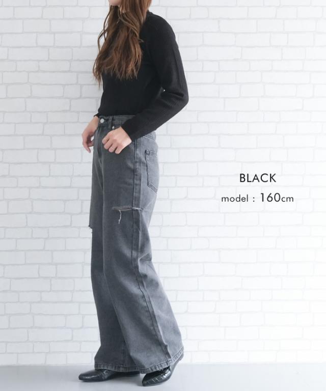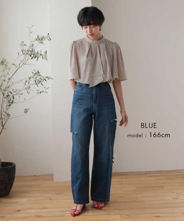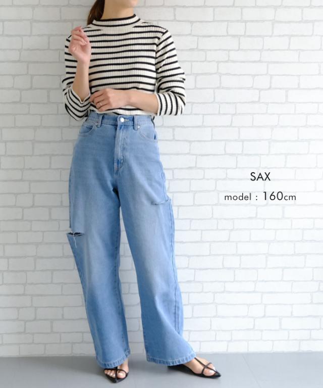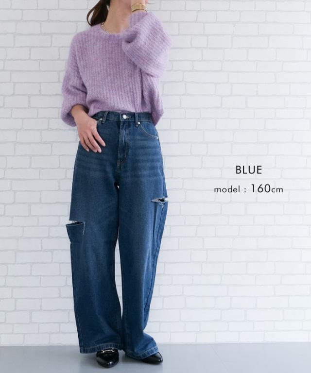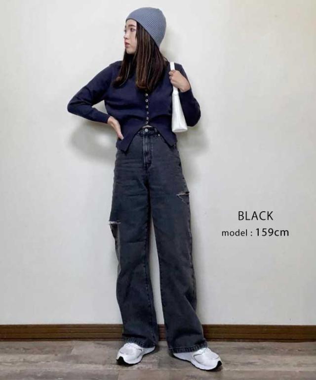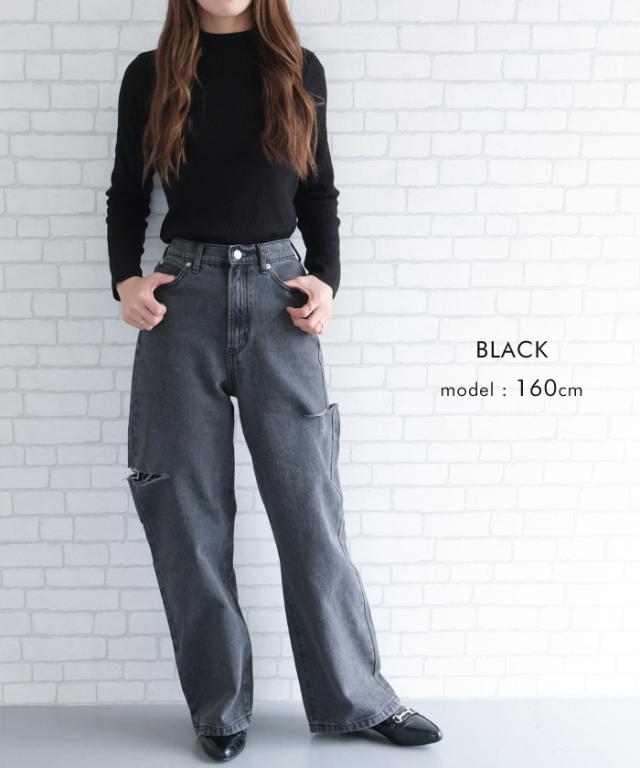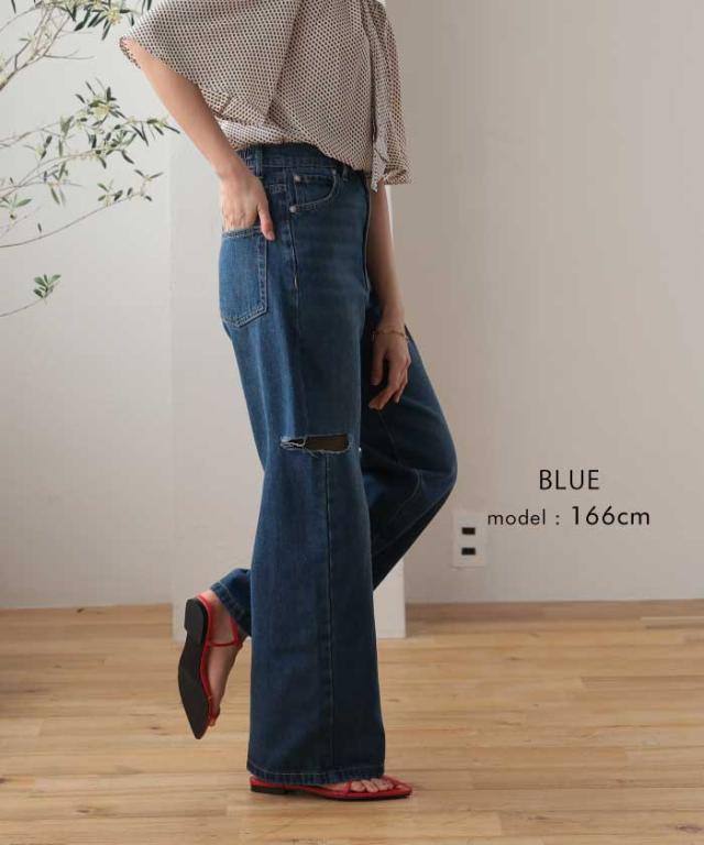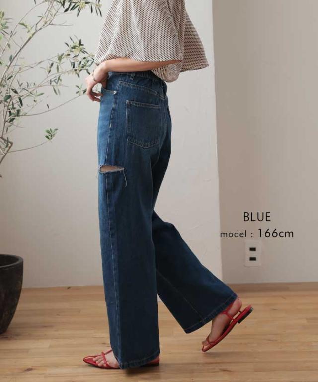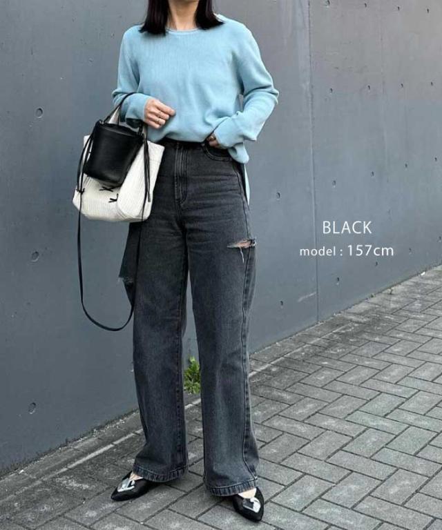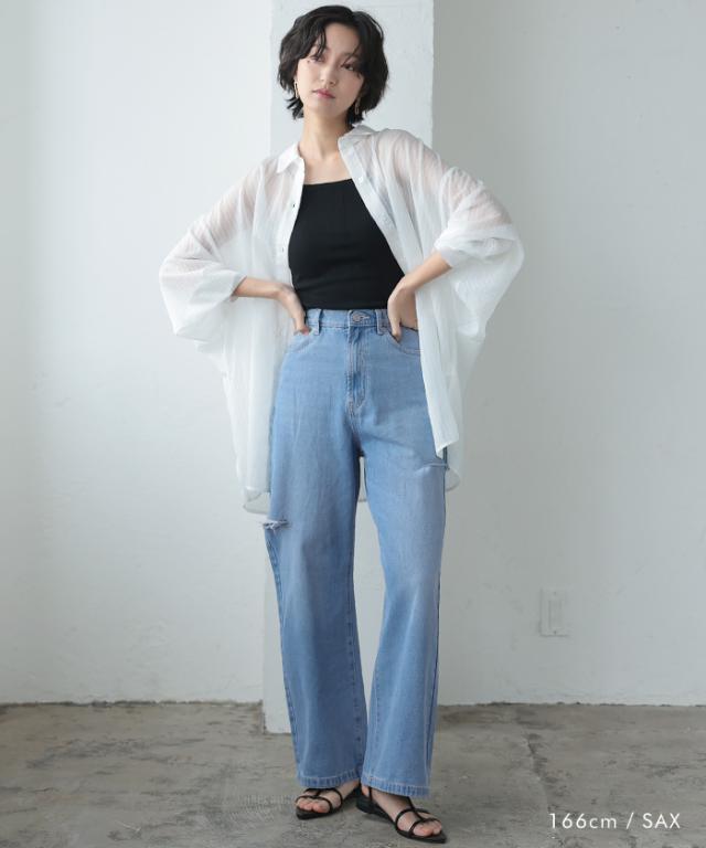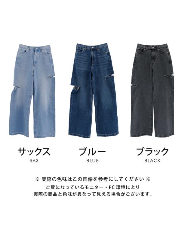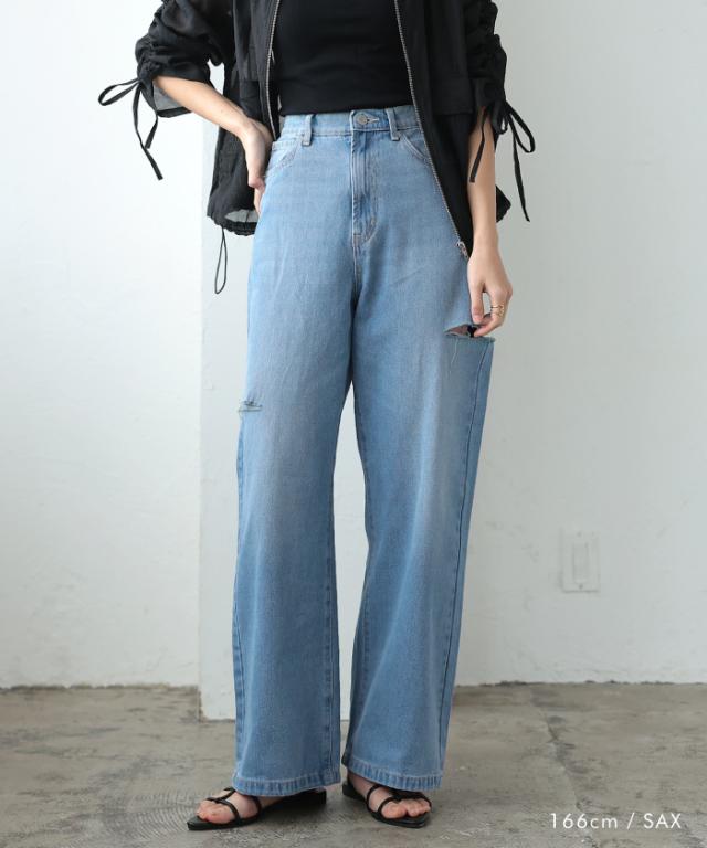 トレンドを着こなせるダメージストレートデニムパンツ