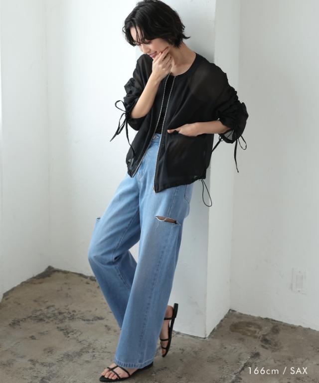 ダメージ加工を施した適度な肌みせで女性らしくヘルシーに着れます。