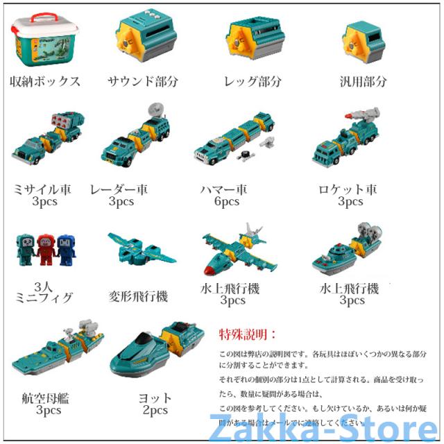 自動車変形玩具 おもちゃ 収納ボックス付き リアル模型おもちゃ プレゼント いろんな組合せ 合体ロボット 戦闘機 装甲車 飛行機 航空母艦 ヨット ロヶット車