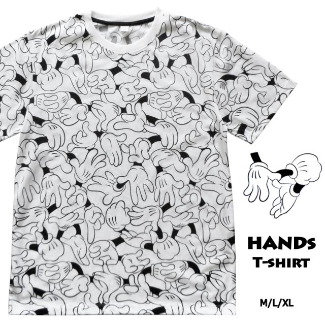 送料無料 総柄 Tシャツ ハンド メンズ レディース ディズニーじゃないよ グローブ 白手袋 マジックハンド アメコミ マジシャン 手品師 キャラクター ハンドサイン グラフィックアート ペアコーデ ミッキーハンド かわいい 手話 おしゃれ モノトーン