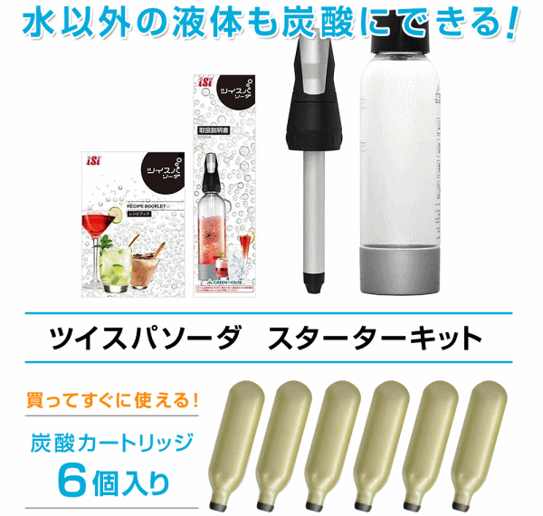 グリーンハウス 炭酸水メーカー ソーダマシン ソーダメーカー ツイスパソーダ 炭酸メーカー 炭酸水 アウトドア キャンプ パーティ 家庭用 GREEN HOUSE ツイスパソーダ スターターキット SODACK
