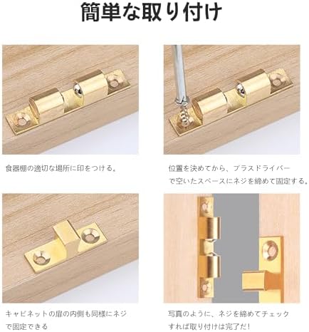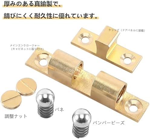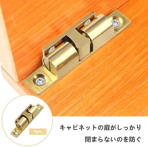 【素材】ダブルボールキャッチは金色の良質な真鍮で作られており、作りがしっかりしていて耐久性に優れており、キャビネットのドアをしっかりと閉めることができ、あらゆる種類のキャビネットのドアに適しています。