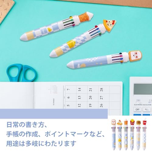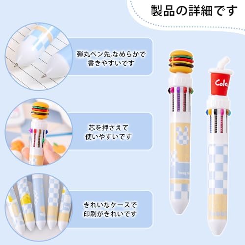 かわいい 10色 ボールペン [6本セット] おしゃれ 多色ボールペン カスタムボールペン 多機能 食べ物 可愛い ハンバーガー ピザ ポテト 文房具 業務用 子供 学生 プレゼント ギフト 結婚式 記念品 DIYセット 学生 教師 卒業祝い