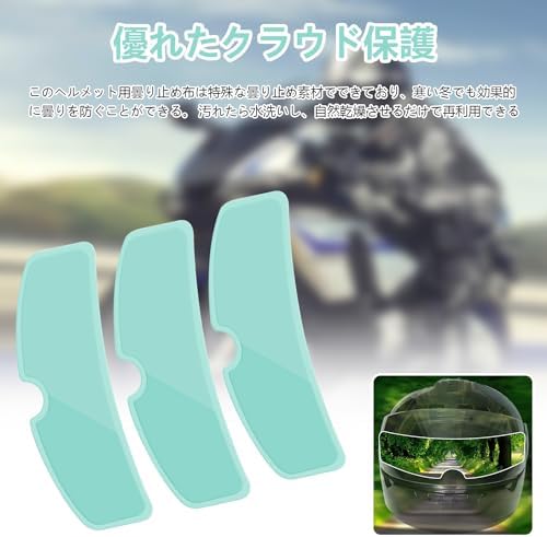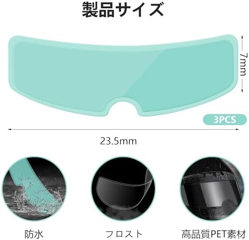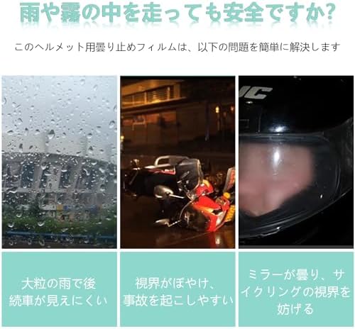 ヘルメット 曇り止めシート:雨の日にバイクや自転車を乗る時、バイク ヘルメット シールドは曇りによって視界に影響を与えるか?それは交通事故を発生する可能性があります。このヘルメット曇り止めフィルムば、全ての問題を解決できます。適用品種:様々なヘルメットシールドに適合します。 雨や霧の日のぼやけを防ぎ、安全な運転を提供します。