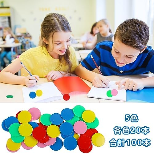 【セット内容】赤、黄、青、緑、ピンク、各色25枚ずつ、直径約25mmです。