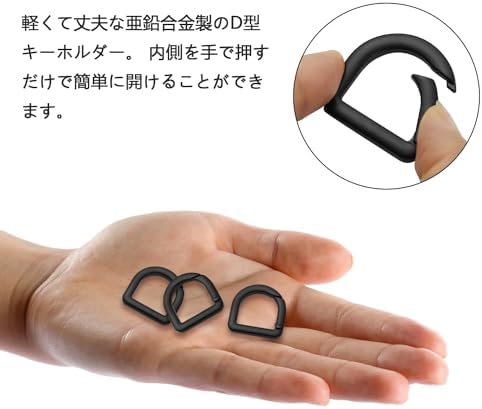 【高品質素材】D型キーリングは軽量で耐久性のある亜鉛合金製。スムーズなスナップ操作。