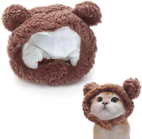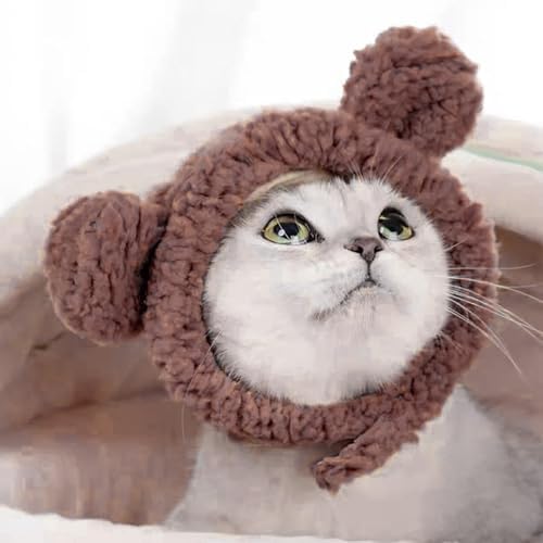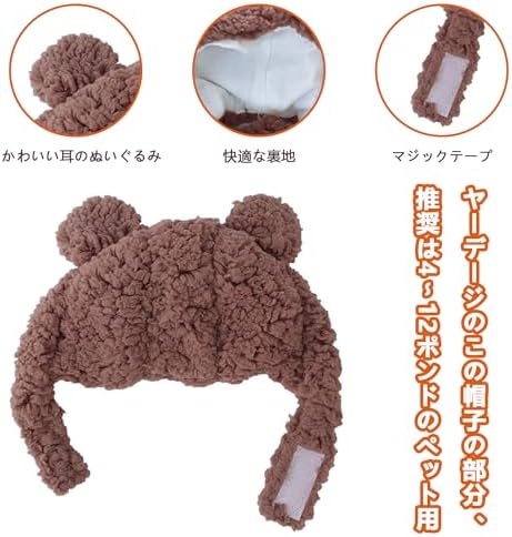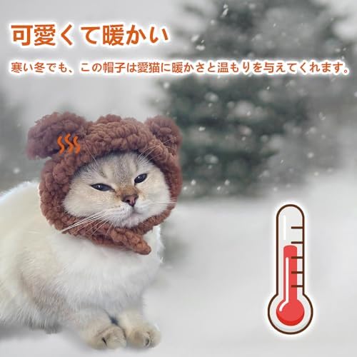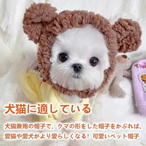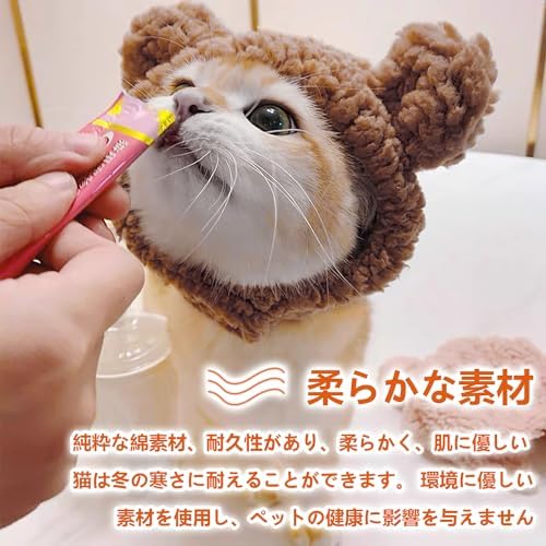 猫服 かぶりもの 帽子 猫 熊コスプレ帽子 ペット帽子 コスプレ仮装 体重2〜4.5kgの猫に適している 首回り30〜35cm 熊の耳付き 可愛い おしゃれ 調整テープ 着脱簡単 お誕生日ハロウィーンクリスマス仮装帽子 猫犬兼用 ペット用品
