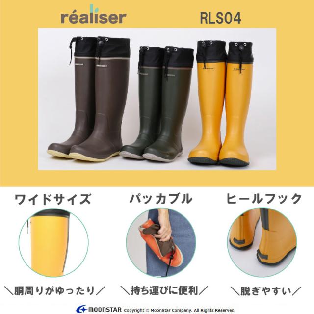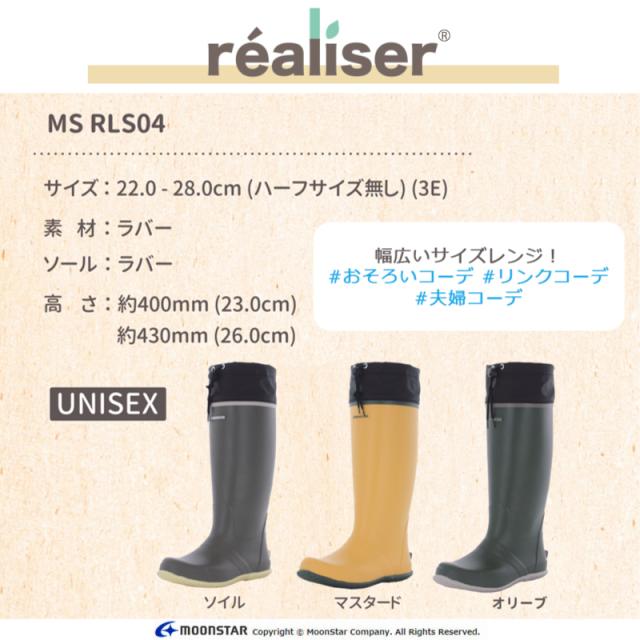 送料無料 ムーンスター メンズ/レディース ワークシューズ レアリゼ MS RLS04 ソイル マスタード オリーブ 母の日 ガーデニング 農作業 アウトドア レインブーツ 長靴 雨靴 梅雨 22.0cm 28.0cm 3E moonstar フード付き 父の日