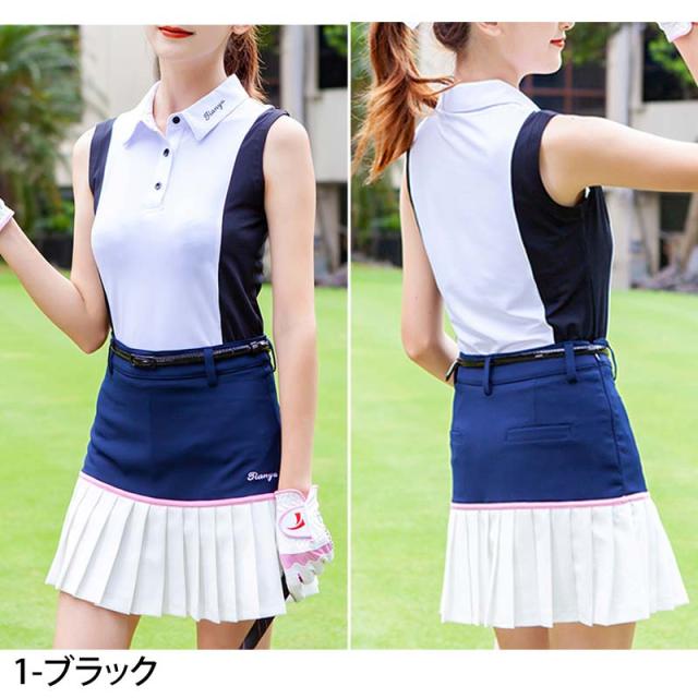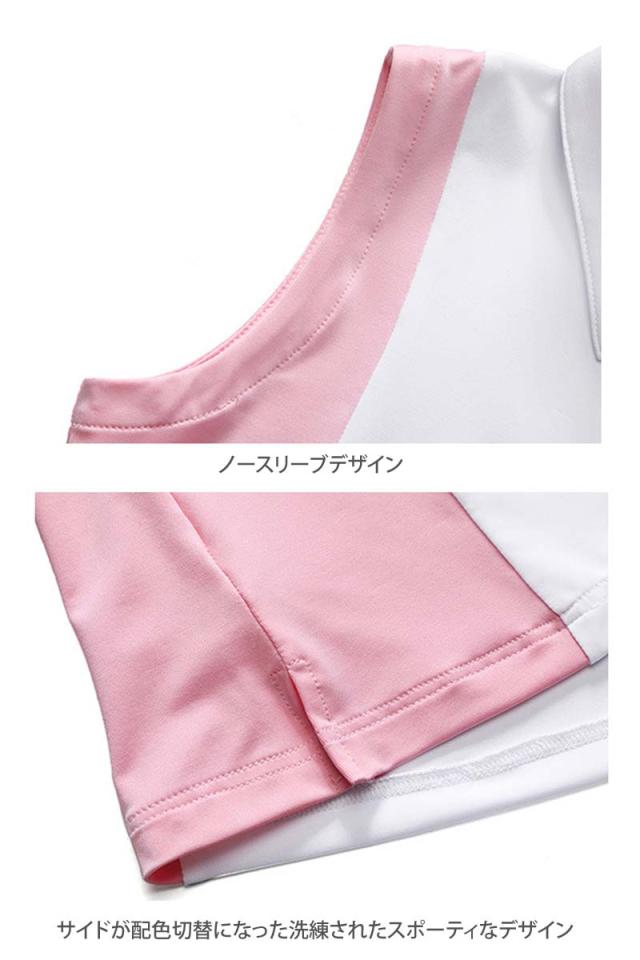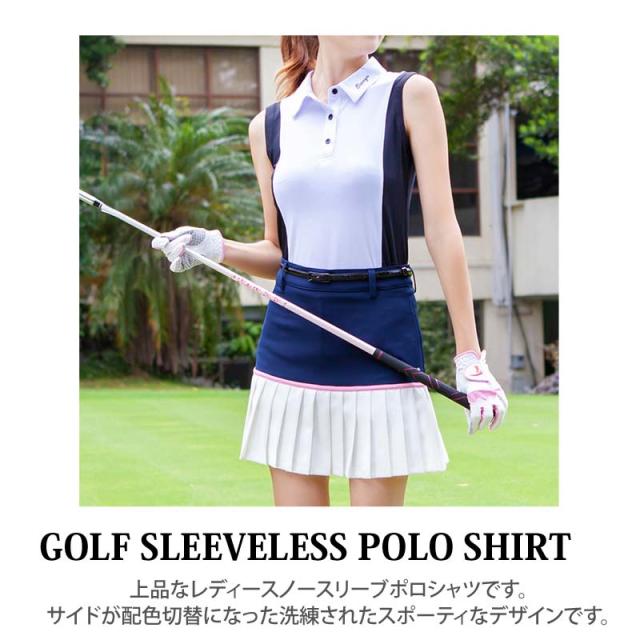 S~XL 新作 送料無料 ゴルフウェア レディース ゴルフノースリーブ ポロシャツ ストレッチ 伸縮 トップス 無地 切替 カットソー おしゃれ かわいい 韓国系 春夏 ゆうパケ