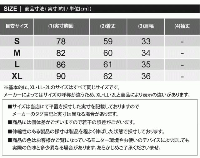 ※基本的に、XL・LL・2Lのサイズはすべて同じサイズです。