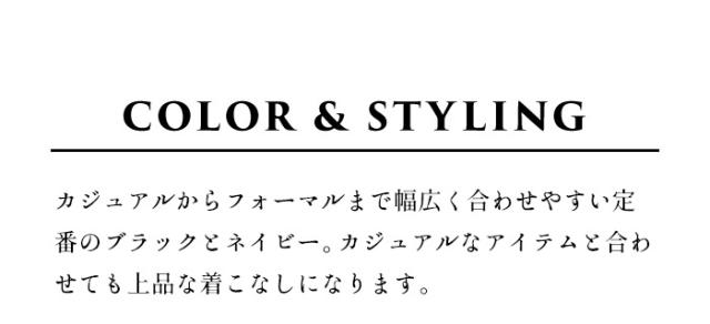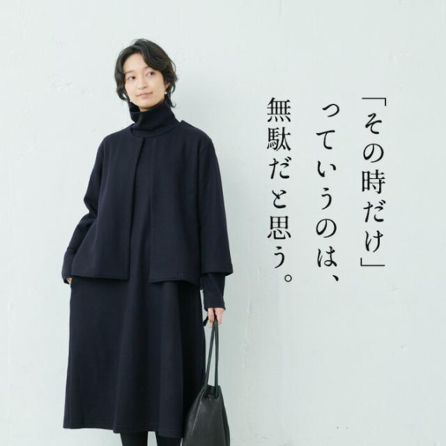 特徴 その時だけっていうのは無駄だと思う。私たちは、きちんと感を演出しながら、デイリーに使えて、着まわしがきくフォーマル服を作っています。上質な素材と定番的なデザインであれば、パールやコサージュなど少しの小物を上手に身に着けるだけでフォーマル顔になります。ウールの産地尾州で特注した圧縮ウールは、抜群の伸縮性で、フォーマルな場もデイリーもノンストレスな着心地です。