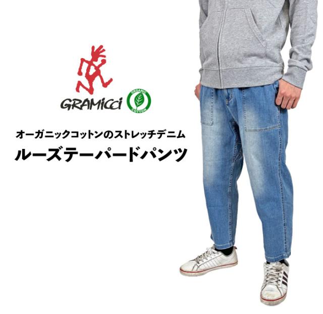 Gramicci グラミチ ストレッチデニムルーズテーパードパンツ オーガニックコットン メンズ クライミングパンツ ワイドパンツ ゆったり アンクル丈 9分丈 クロップド アウトドア キャンプ DENIM LOOSE TAPERED PANTS G3FU-P004