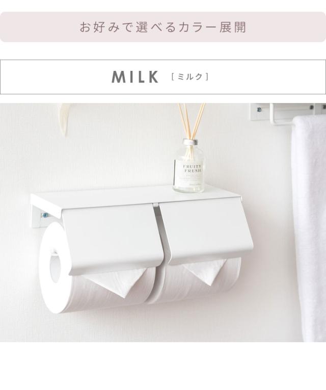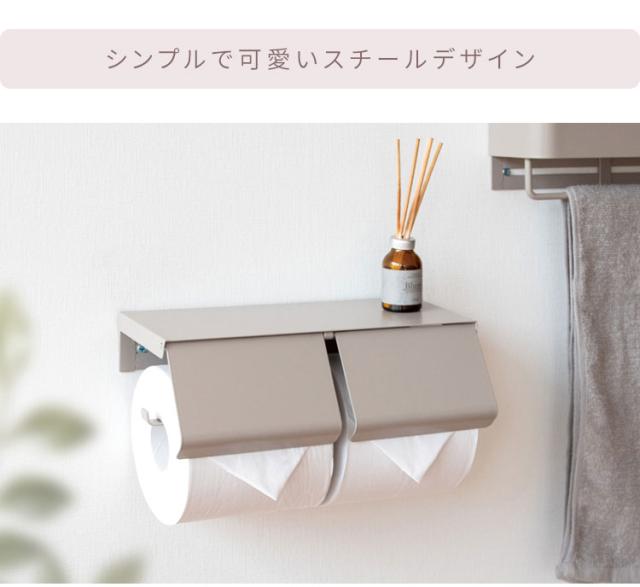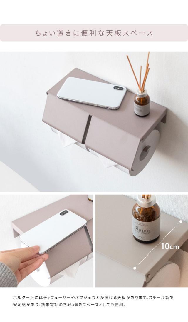 補充が少ない二連式トイレットペーパーホルダーは毎日のおトイレが快適。取り出しやすいペーパーはサイドから差し込むだけの簡単交換。天板はディフューザーなどの小物や携帯電話のちょい置きにも便利です。