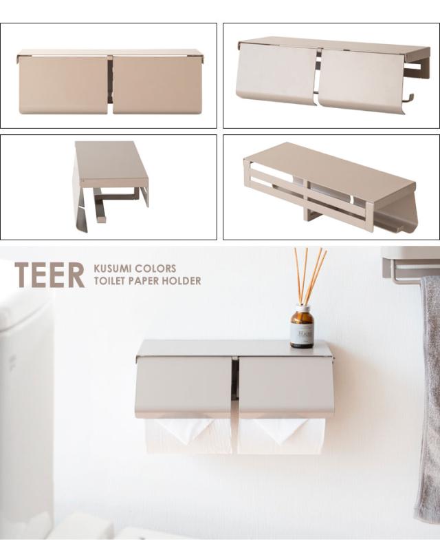トイレットホルダー TEER ティール くすみカラー かわいい おしゃれ ペーパーホルダー トイレ 2連 トイレットペーパーホルダー 2連 棚付き スマホ置き くすみカラー 可愛い 横(代引不可)【送料無料】