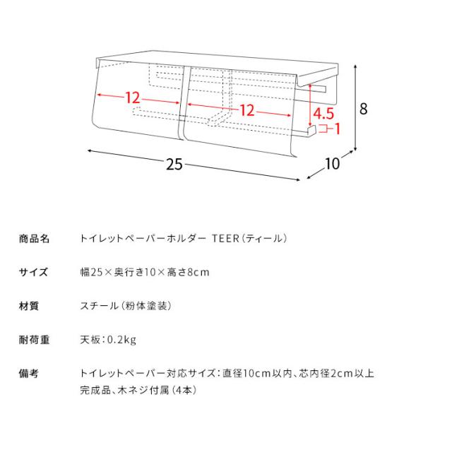 備考:トイレットペーパー対応サイズ:直径10cm以内、芯内径2cm以上、完成品、木ネジ付属(4本)