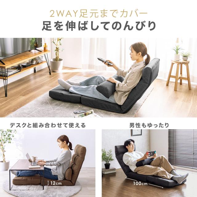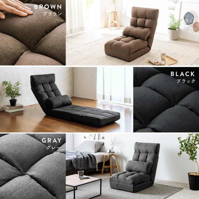 座椅子 座椅子ソファー ソファー ソファベッド 一人掛け シングル フロアチェア クッション付き リクライニング 14段階角度調節 ブラック ブラウン グレー[150-SNCF16]