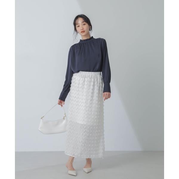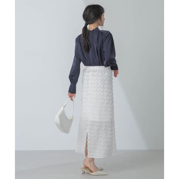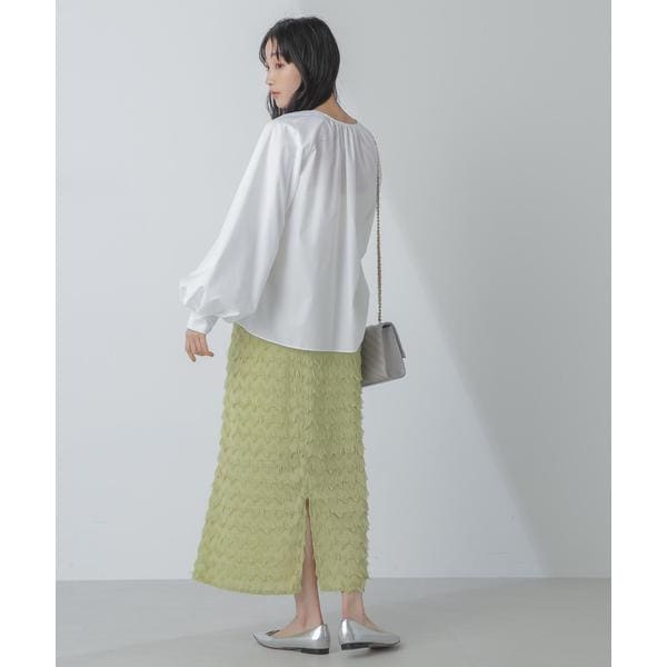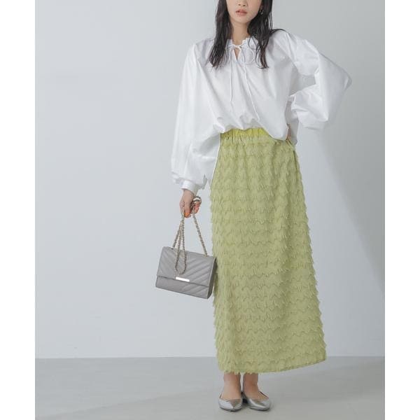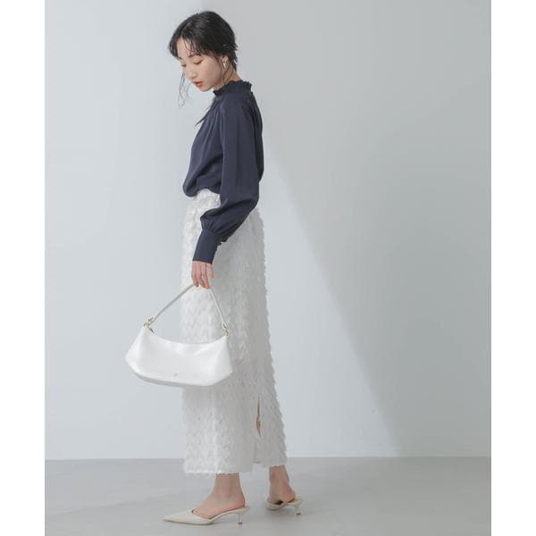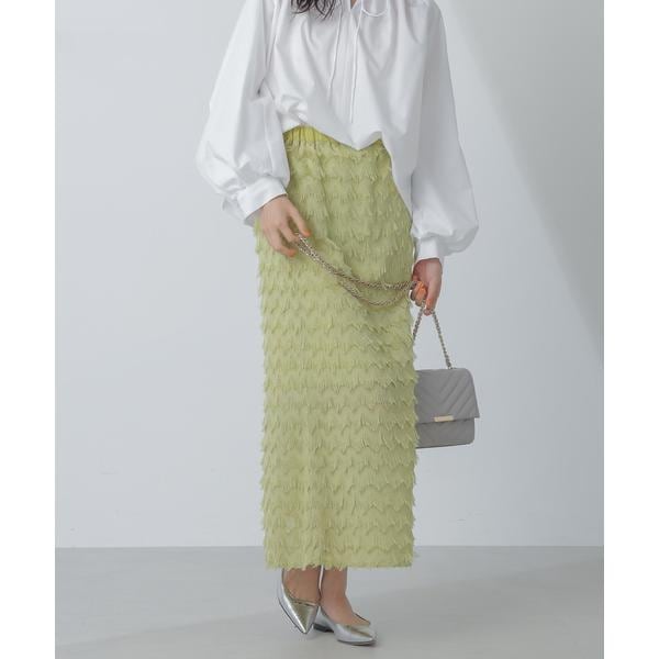 ・表情豊かなフリンジ素材がポイントのシャギーナロースカート