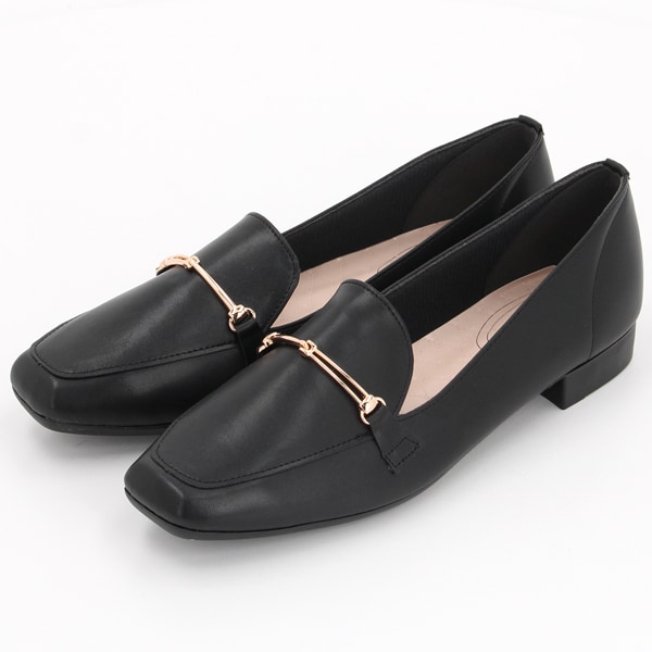 【幅広3E】【日本製】スクエアトゥビットローファーフラットパンプス