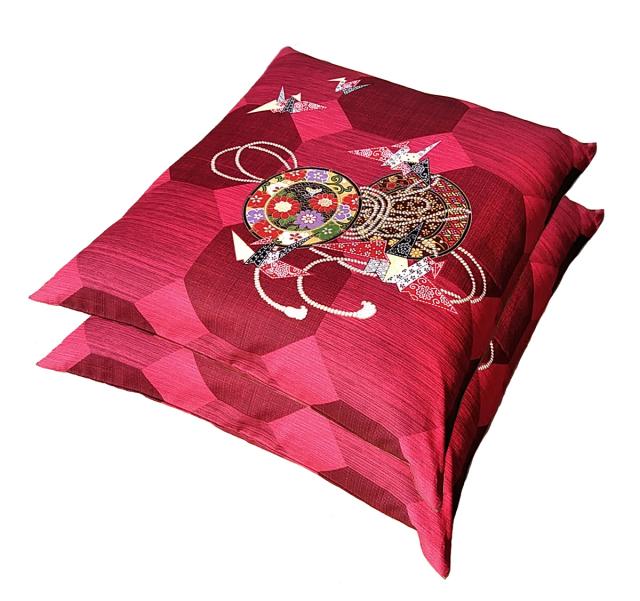 座布団カバー 2枚組 鼓 レッド 約 55×59 cm 日本製 ネコポス便限定 銘仙判 和風 クッションカバー 2枚セット 2枚 55 59 55x59