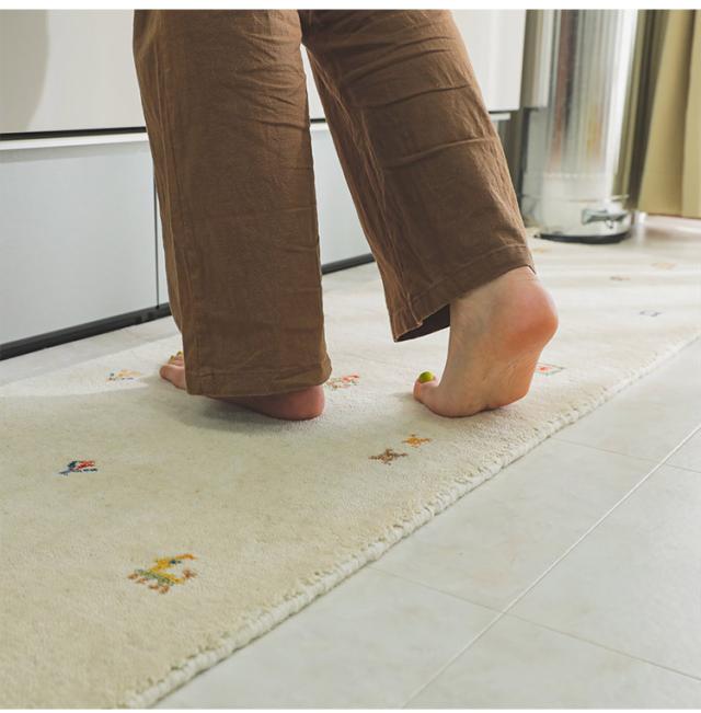 ギャベ ギャッベ キッチンマット 45×120cm インド製 手織りギャッベ ウール100% 防炎ラベル付き おしゃれ ラグ ラグマット カーペット(代引不可)【送料無料】