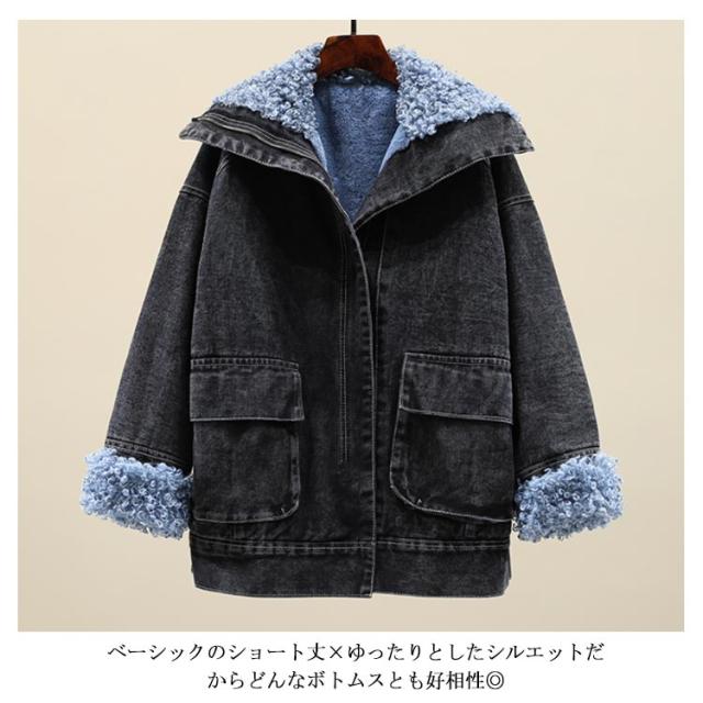 全4色×2サイズ!ボアジャケット 裏ボア デニムジャケット デニムコート ボア アウター ジャケット コート ジージャン Gジャン 厚手 秋冬 冬服 冬物 レディース