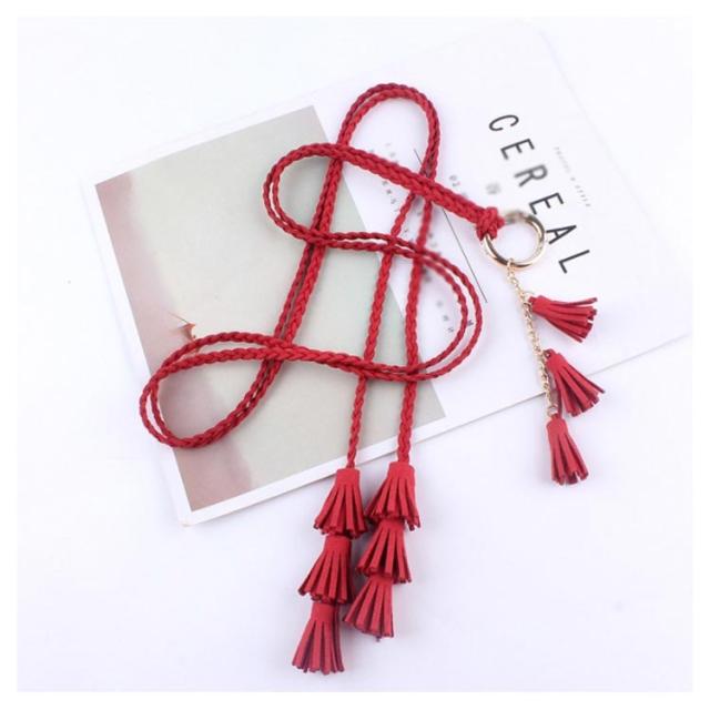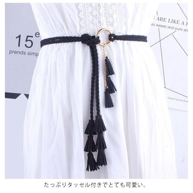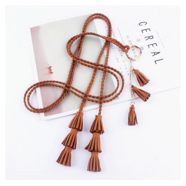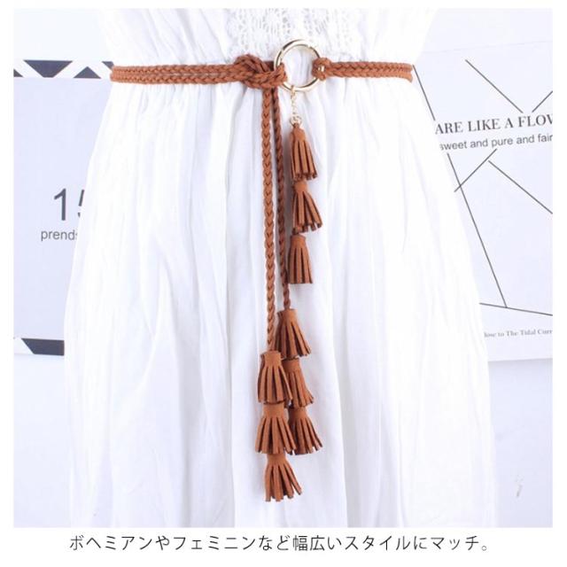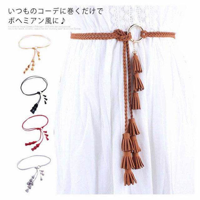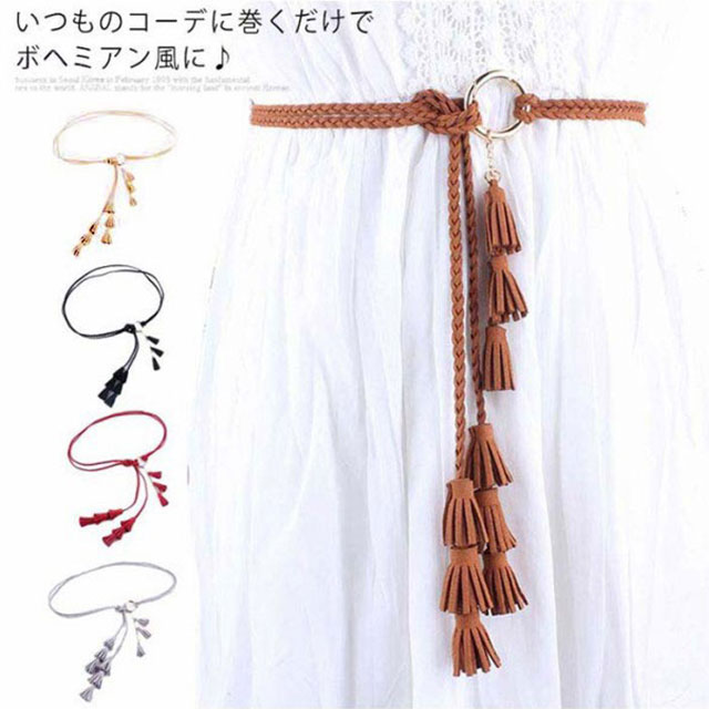 紐ベルト ロープベルト レディース 編み 飾りベルト スエード ベルト タッセル フリンジ ファッション小物 可愛い ボヘミアン風 巻きベルト ウエストマーク ワンピース ドレス