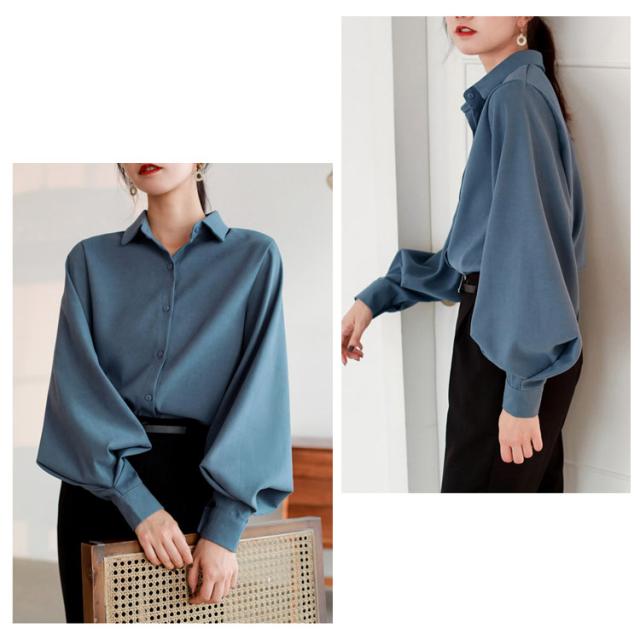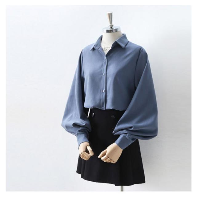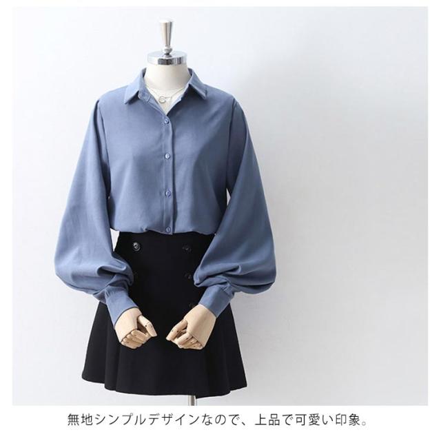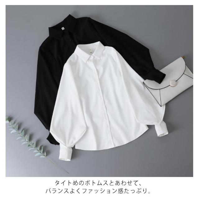 ボリューム袖が大人可愛い ブラウス バルーンスリーブ 長袖シャツ レギュラーカラー 無地 ゆとり ボリューム袖 レディース 送料無料 長袖 トップス 春秋 新作 パフスリーブ 通勤 お出かけ お呼ばれ 二次会 大人気