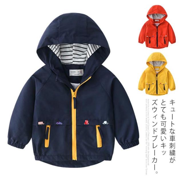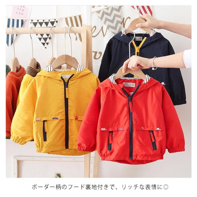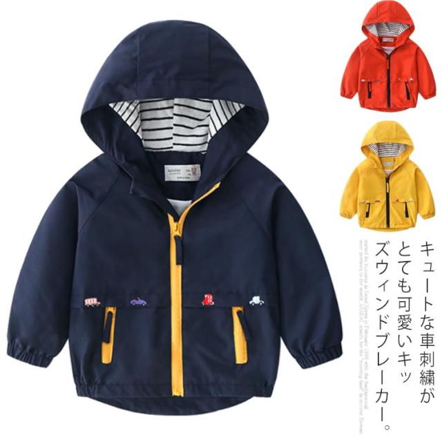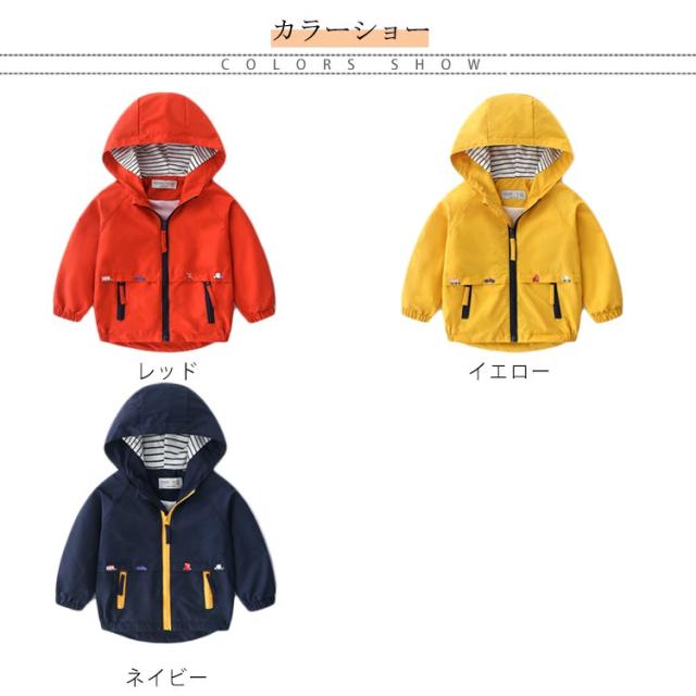 子供ジャケット ブルゾン フード付き ジャケット ジャンパー キッズ ユニセックス 男の子 女の子 スプリングコート ウインドブレーカー 春秋 90cm 100cm 110cm 120cm 130cm 刺繍 車