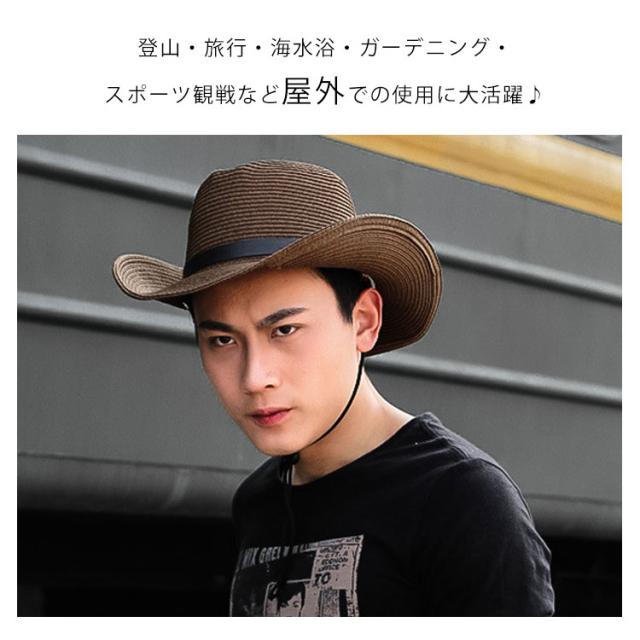 麦わら帽子 メンズ ツバ広 帽子 ハット 折りたたみ ストローハット UVカット 日除け 紫外線対策 農作業 中折れ 春夏 アウトドア カジュアル 送料無料