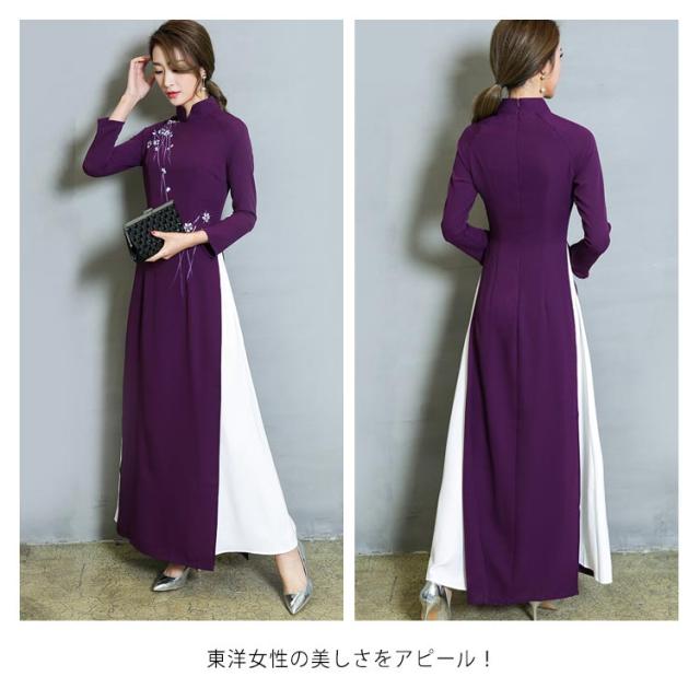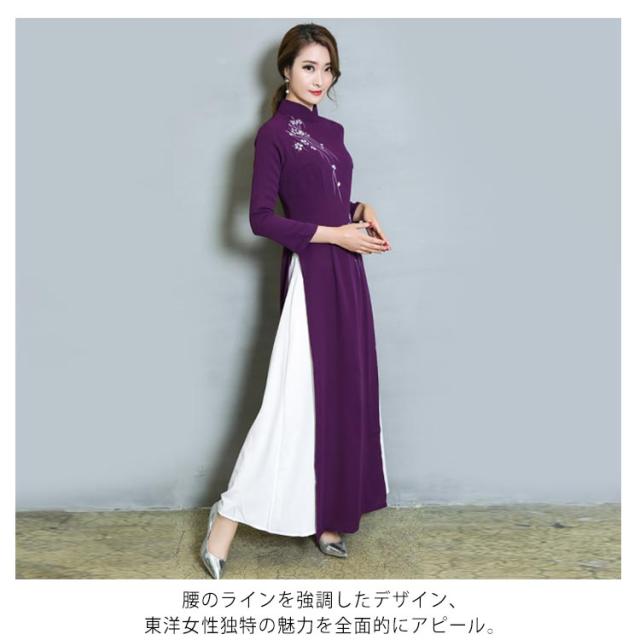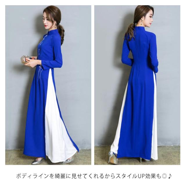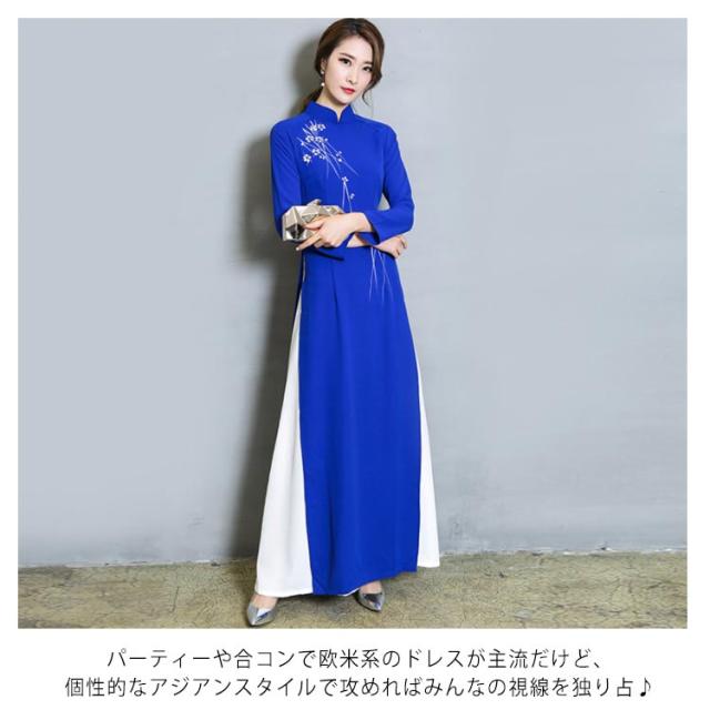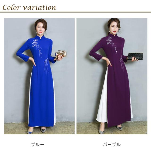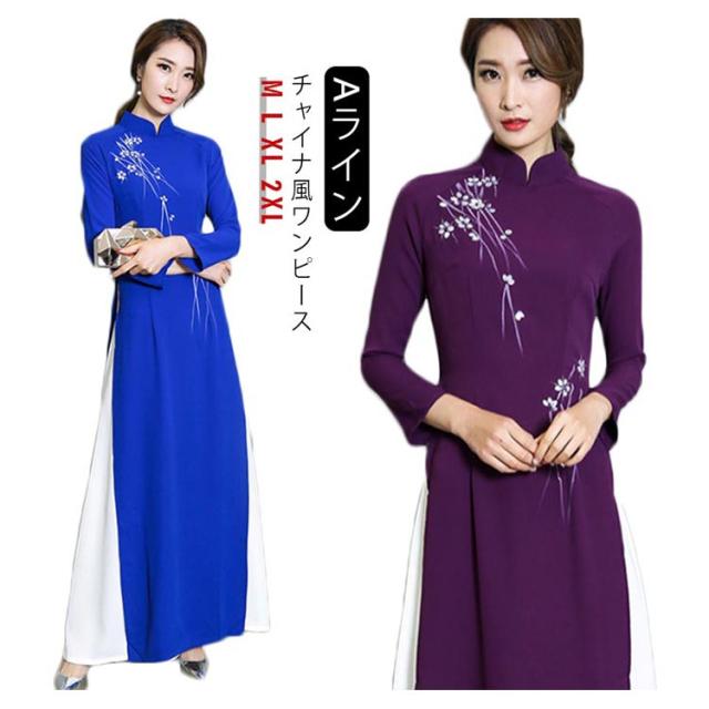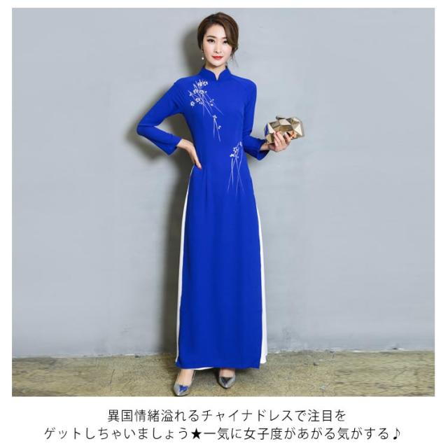 送料無料 チャイナドレス ロング ワンピース 長袖 チャイナドレス風 ワンピース レディース チャイナワンピース チャイナ風 ワンピース Aライン フォーマル お呼ばれ パーティー 結婚式 コスプレ 衣装 コスチューム