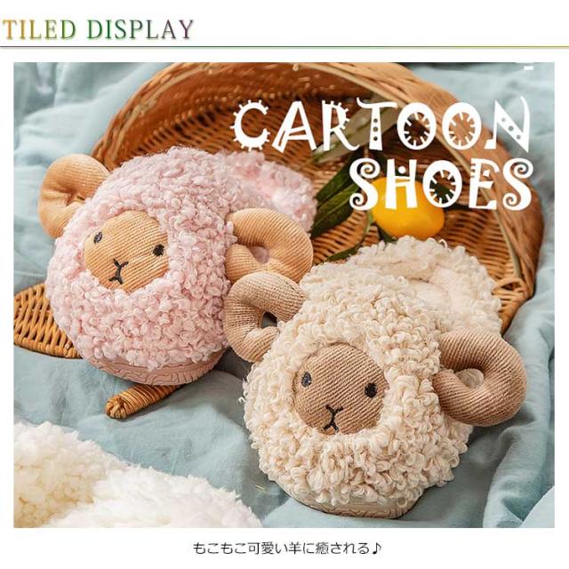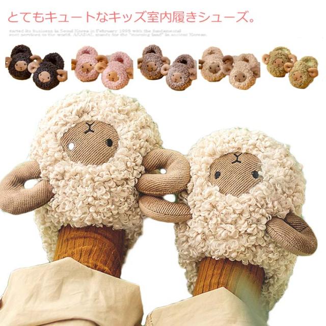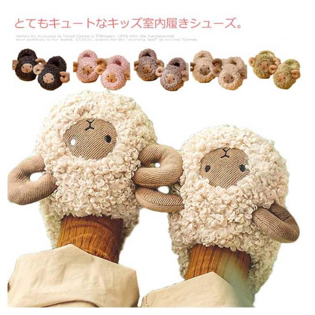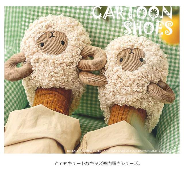 15-21cm 子供スリッパ もこもこ あったか 冬用 秋 ルームシューズ キッズ 可愛い ひつじ 動物 ボアスリッパ 室内履き 上履き 滑りにくい 防寒