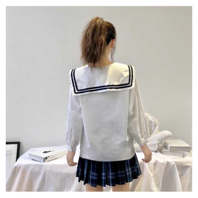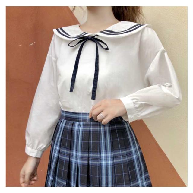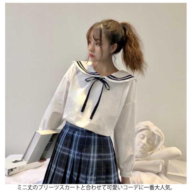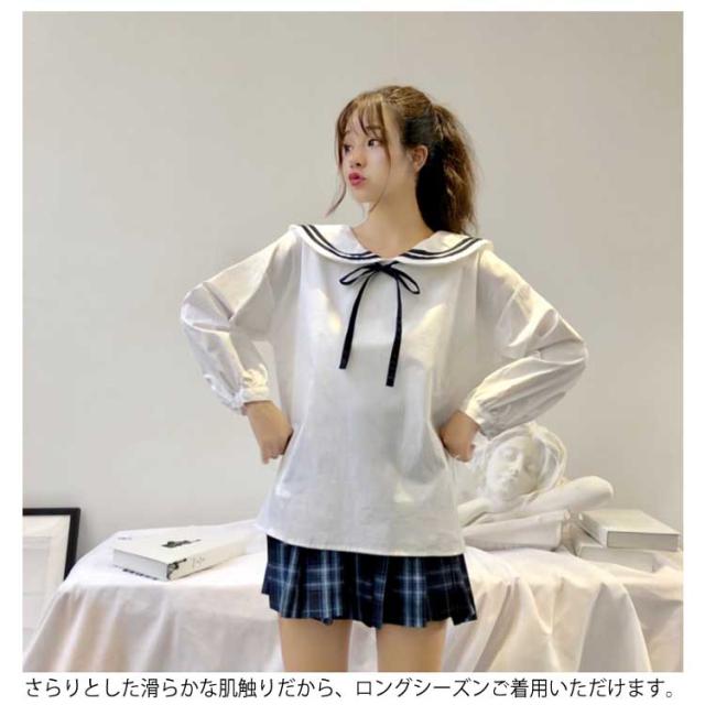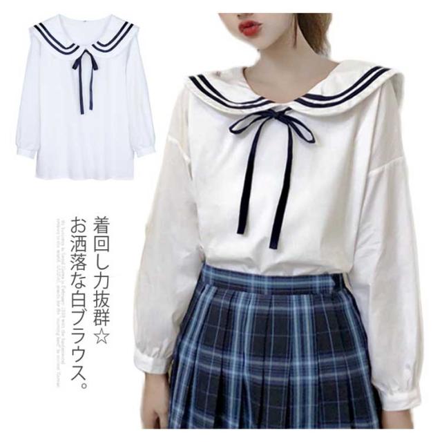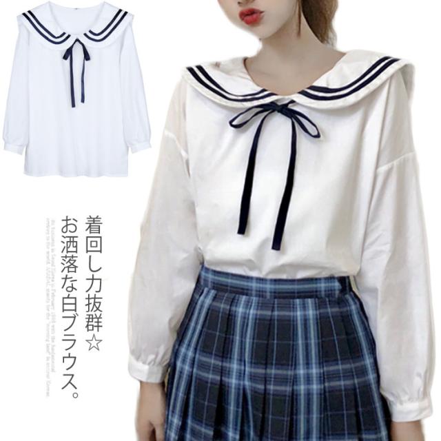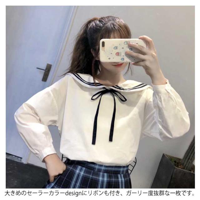 セーラーカラー&リボン付きがガーリー度up!秋服 シャツ ブラウス ladies レディース トップス 長袖シャツ セーラー襟 白 可愛い ナチュラル送料無料