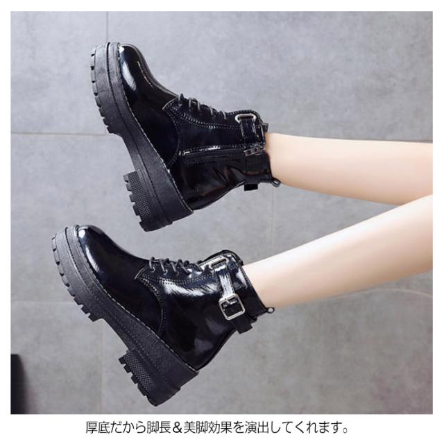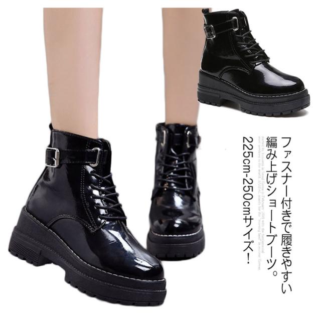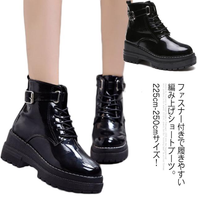 《》225cm-250cmサイズ!厚底ブーツ ブーツ 厚底 ショートブーツ 編み上げブーツ レースアップブーツ ショート丈 ストーム付き 美脚 秋 冬 レディース