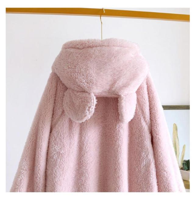 | 可愛いクマ耳付きの着る毛布ロングガウン。 両面にふわふわ柔らかな質感のボアフリース生地をふんだんに使用。 毛足の長い素材なので、保温性・防寒性もばっちり シルエットはリラックス感のあるゆったりとしたシルエット フードの耳付きデザインが可愛らしい。 室内でのコートやカーディガン・コーディガン代わりに◎ 部屋着やリラクシングでのルームウェアとして大活躍 | |